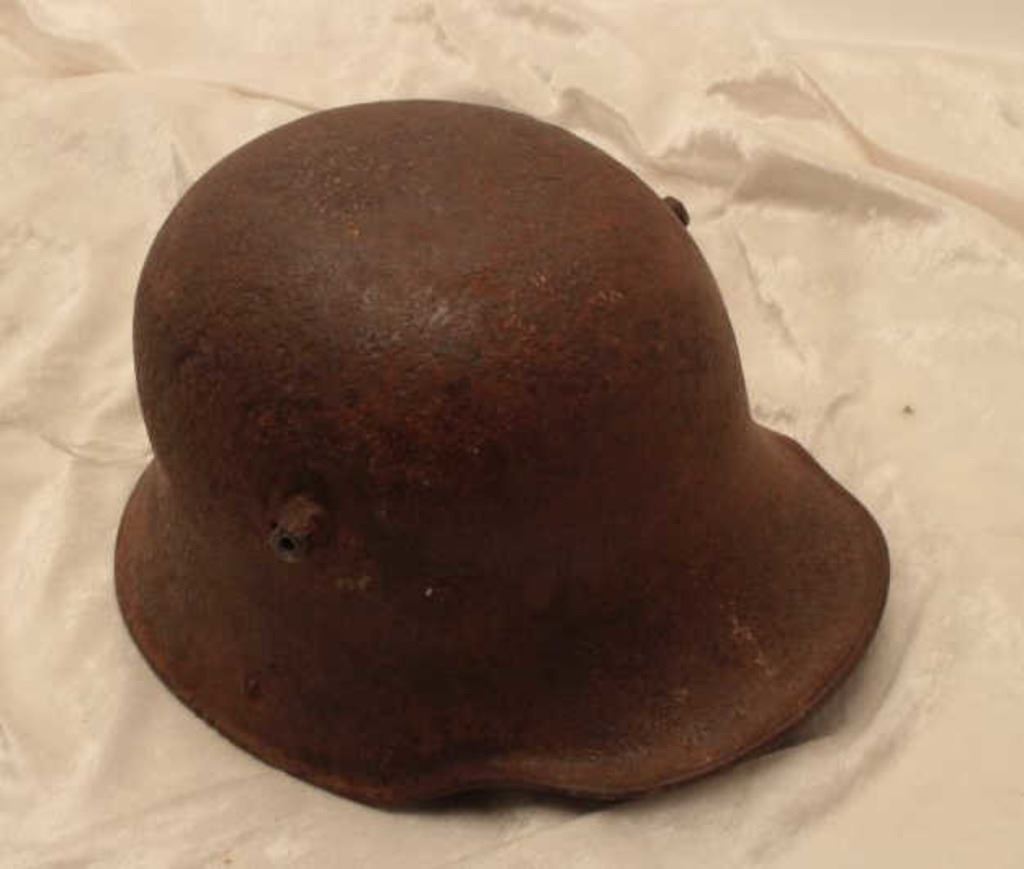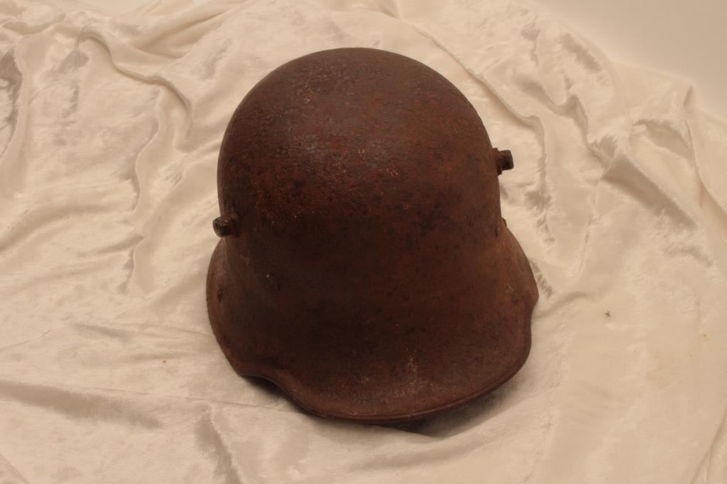 Model 45 German WWII helmet with original liner, S.S. helmet cover, fair needing restoration. Est.: $150-$300