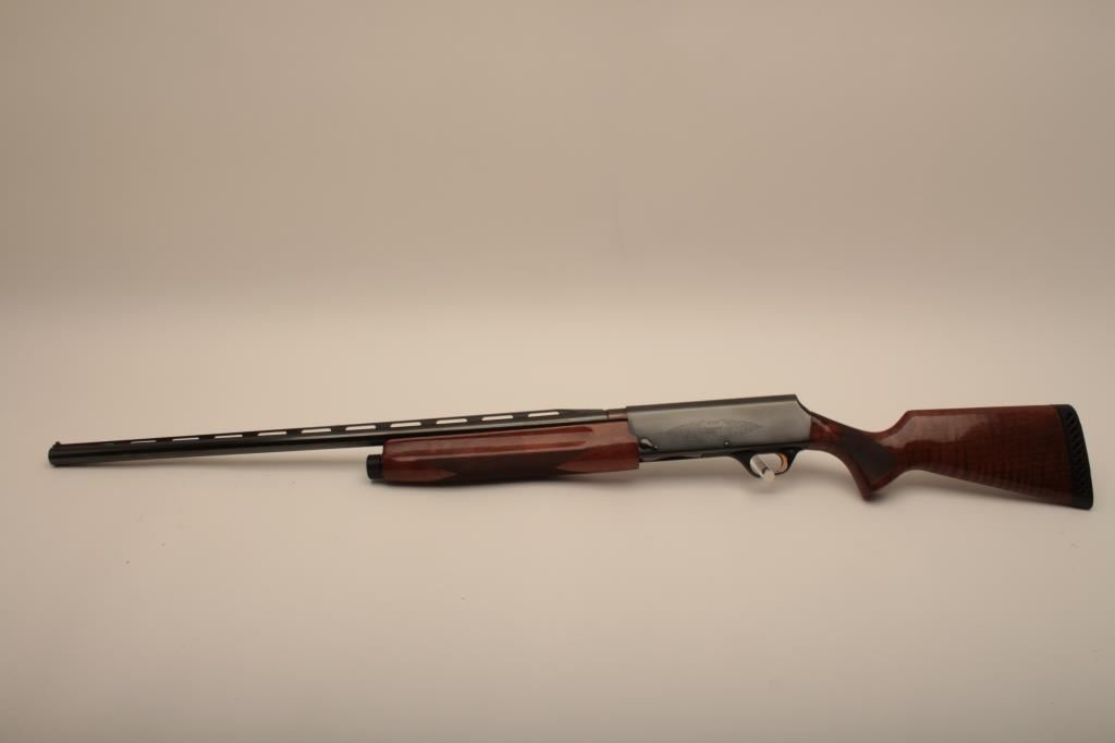 Browning A500 12GA Semi-Auto shotgun made in Belgium and assembled in Portugal with 28” barrel choked improved cylinder, S/N 751PP41256. Very good plus used condition with 90%-95% original finish showing minor edge wear and scratches. The stocks are very good with nice grain and normal use. Measures 14 ½” to the end of thick rubber pad. (C&R) Est.: $300-$600