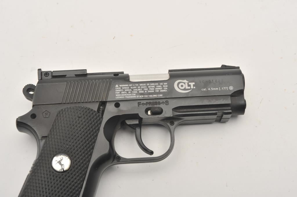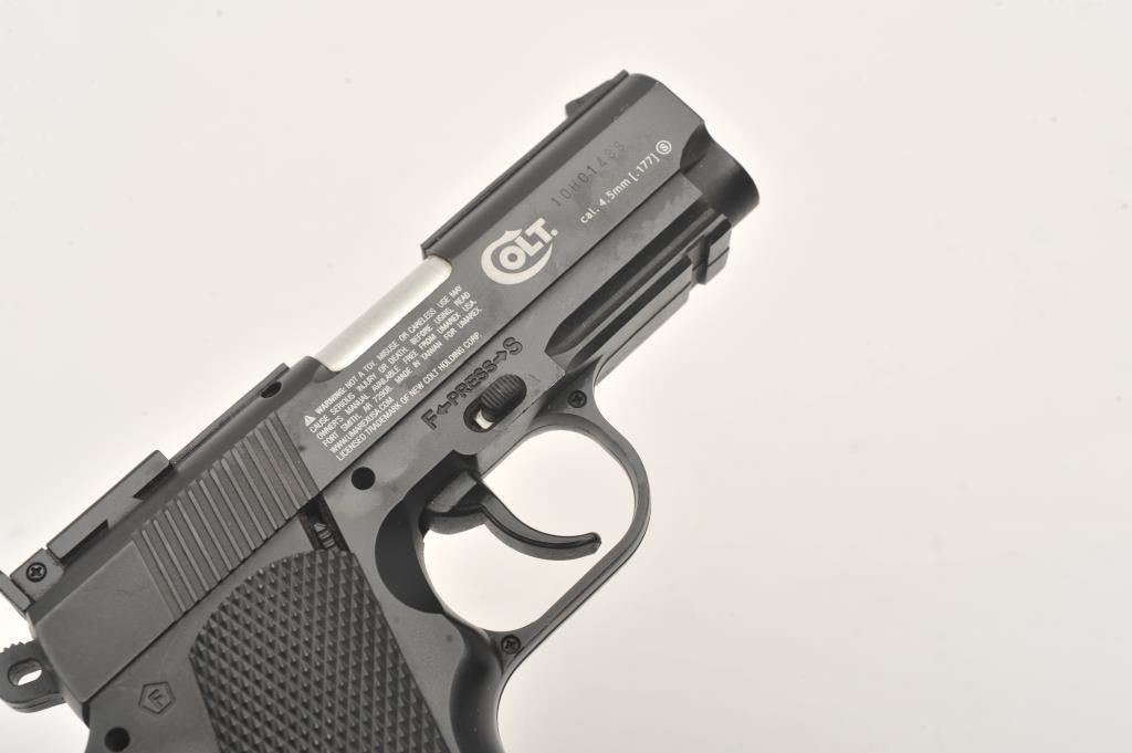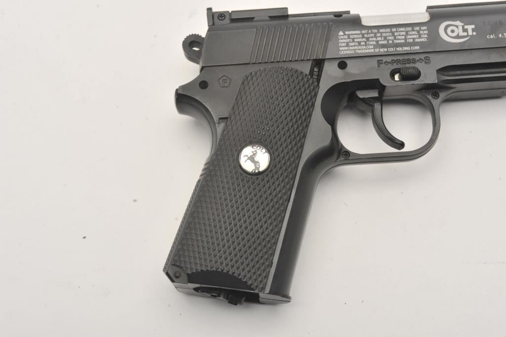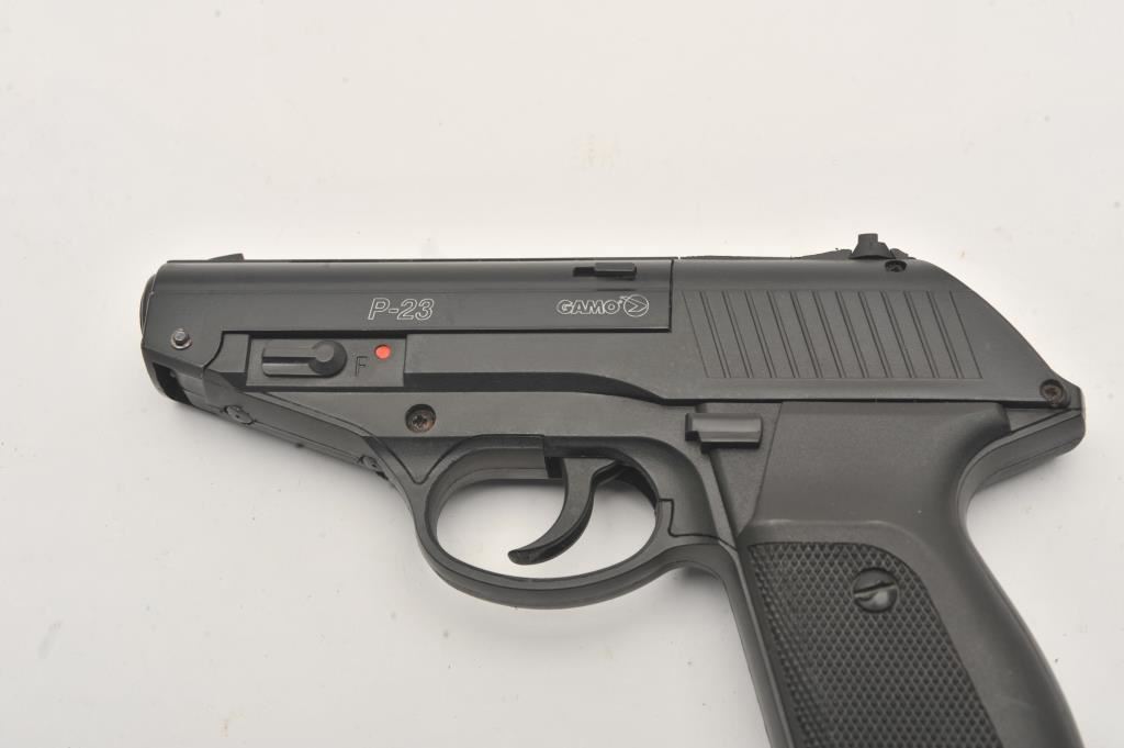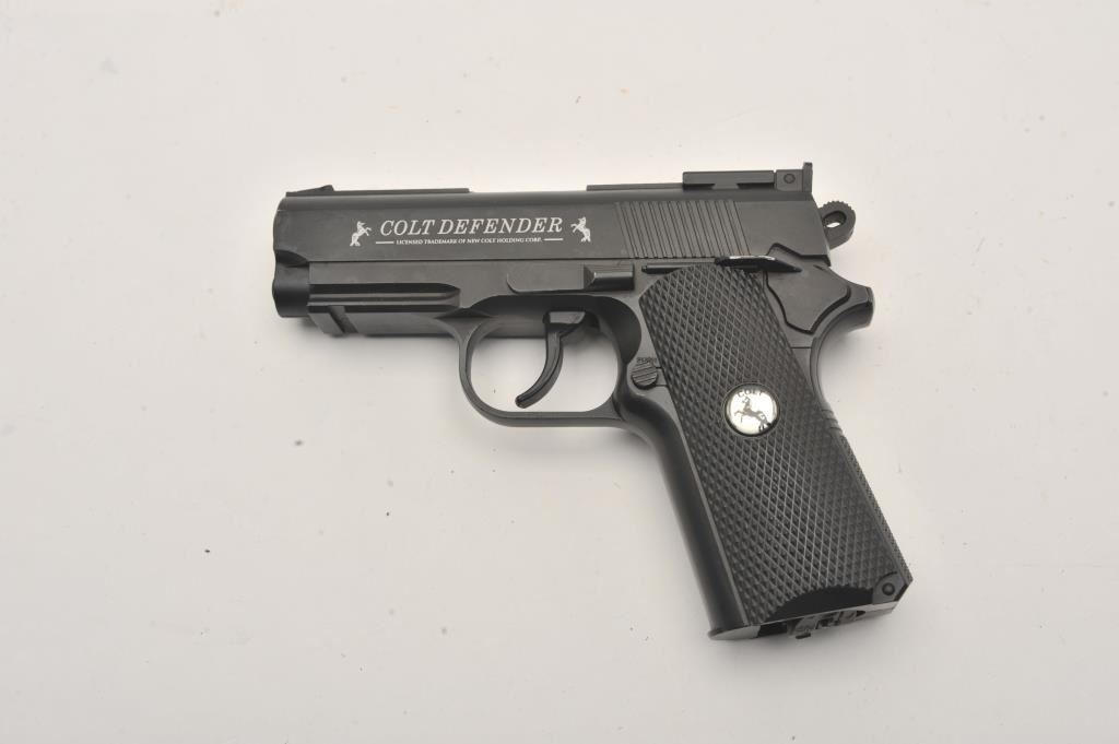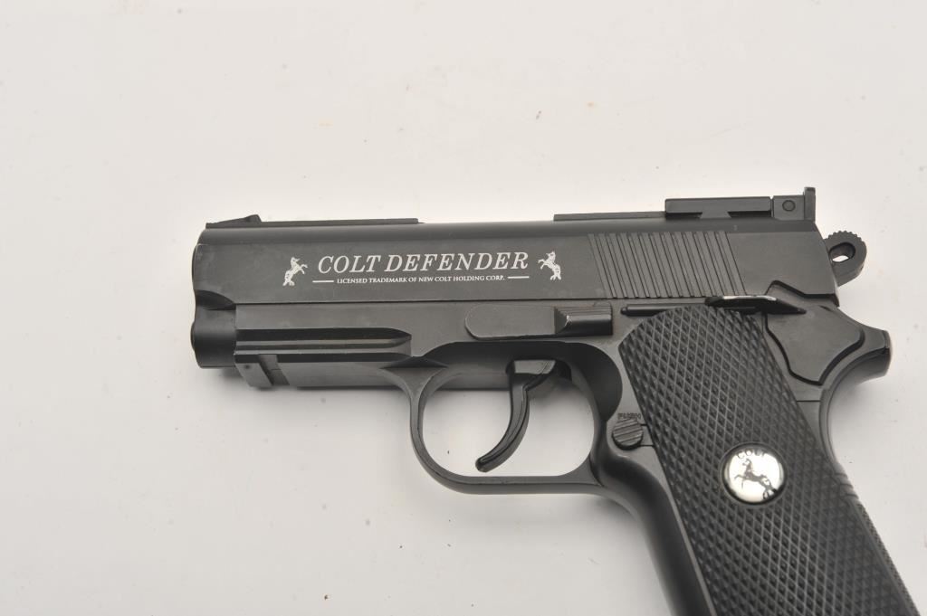 Lot of two .177 caliber CO2 air pistols. The lot includes a Gamo Model P-23 air pistol and a Colt Defender air pistol. Both pistols are in very good overall condition, showing little use. Est.: $50-$100.