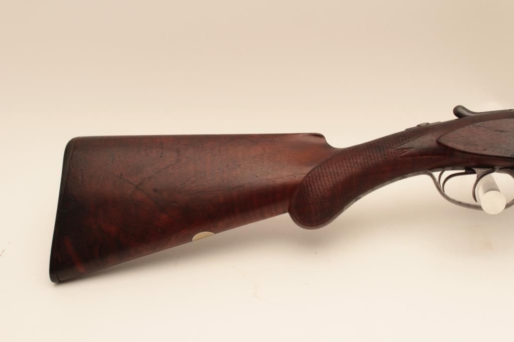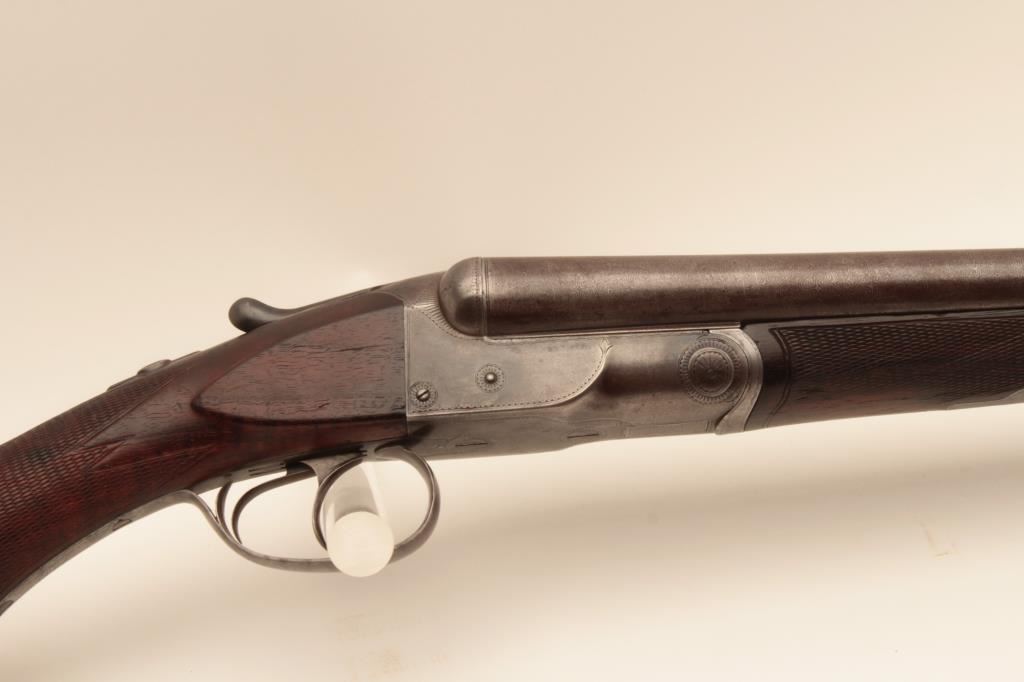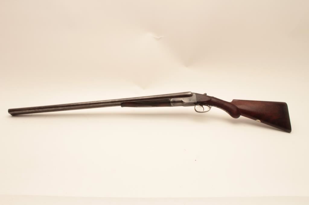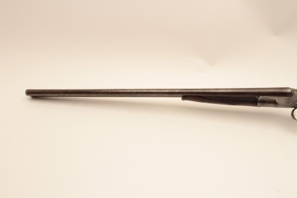 Colt Model 1883 Hammerless shotgun with 30” Damascus barrles in 12GA, S/N 1685 and choked full and full. Checkered pistol grip stock with nicely burled wood grain. Measures 14 1/8” to the end of original Colt buttplate. Standard extractors and double triggers. Good to very good overall with traces of case hardening. The bores are fair to good with a little erosion. (Antique) Est.: $900-$1800