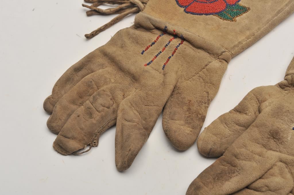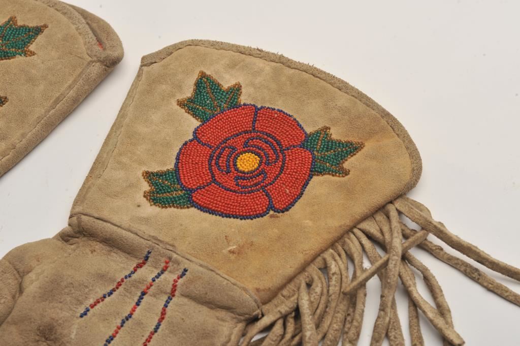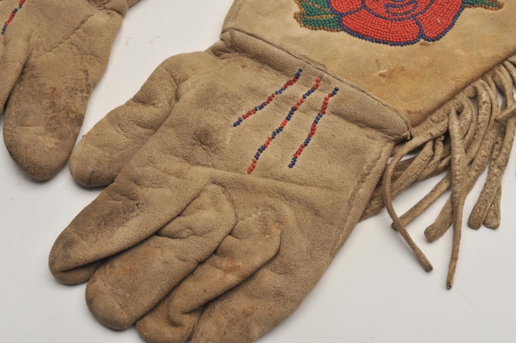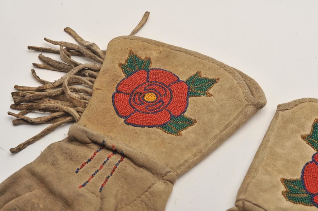 Vintage pair of Indian beaded gauntlets with rose design. Est.: $250-$500.