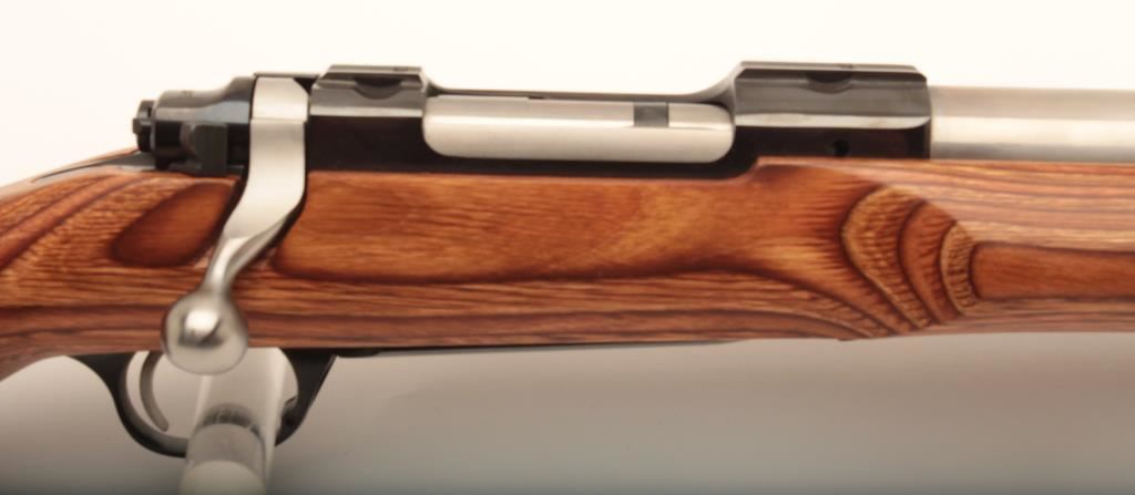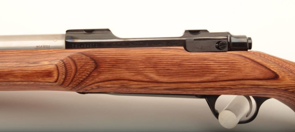 Ruger M-77 Mark II #781-34872, .308 Win cal., 26" stainless heavy barrel, free floating laminated stock with rubber recoil pad. Rifle is in very good plus to near excellent condition overall, very good bore, crisp action, stock is near excellent. (Modern) Est. $400-800