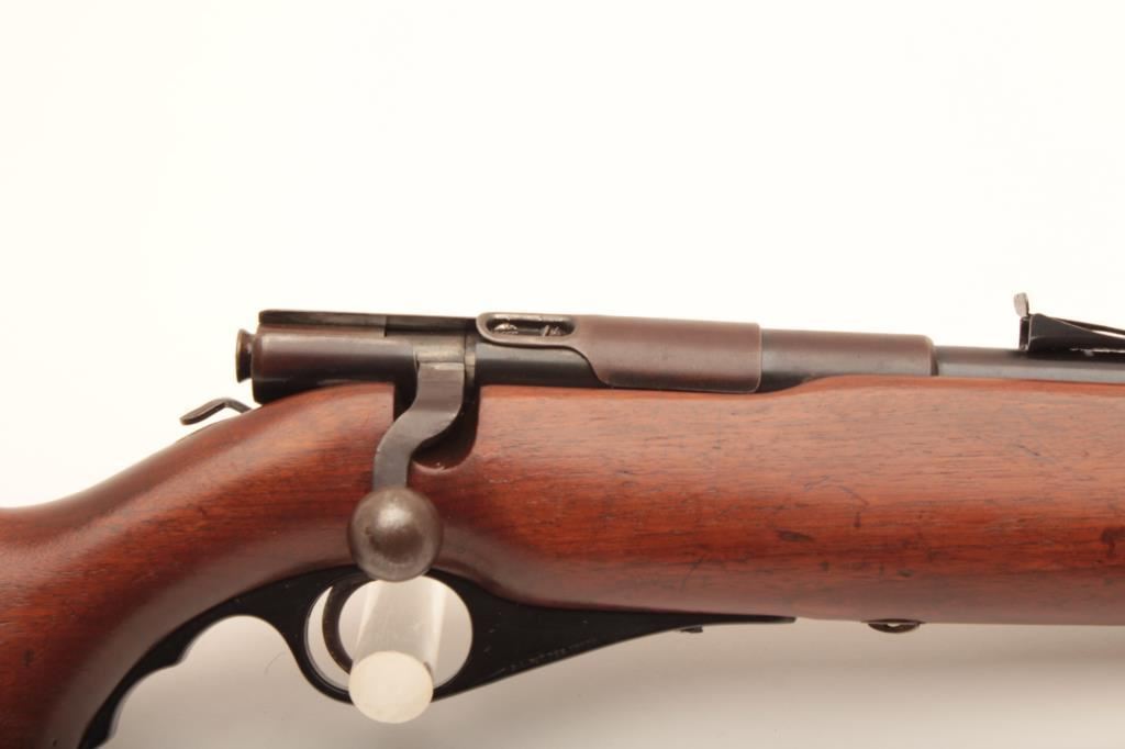 Wards Westernfield Model 491A, NSNV, .22 LR cal, 26" barrel, blued finish, with smooth walnut stock with sling swivels. Rifle is in fair to good condition overall, original finish has turned to a brown patina, stock is very good overall. Good bore and action. (C&R) Est. $125-250