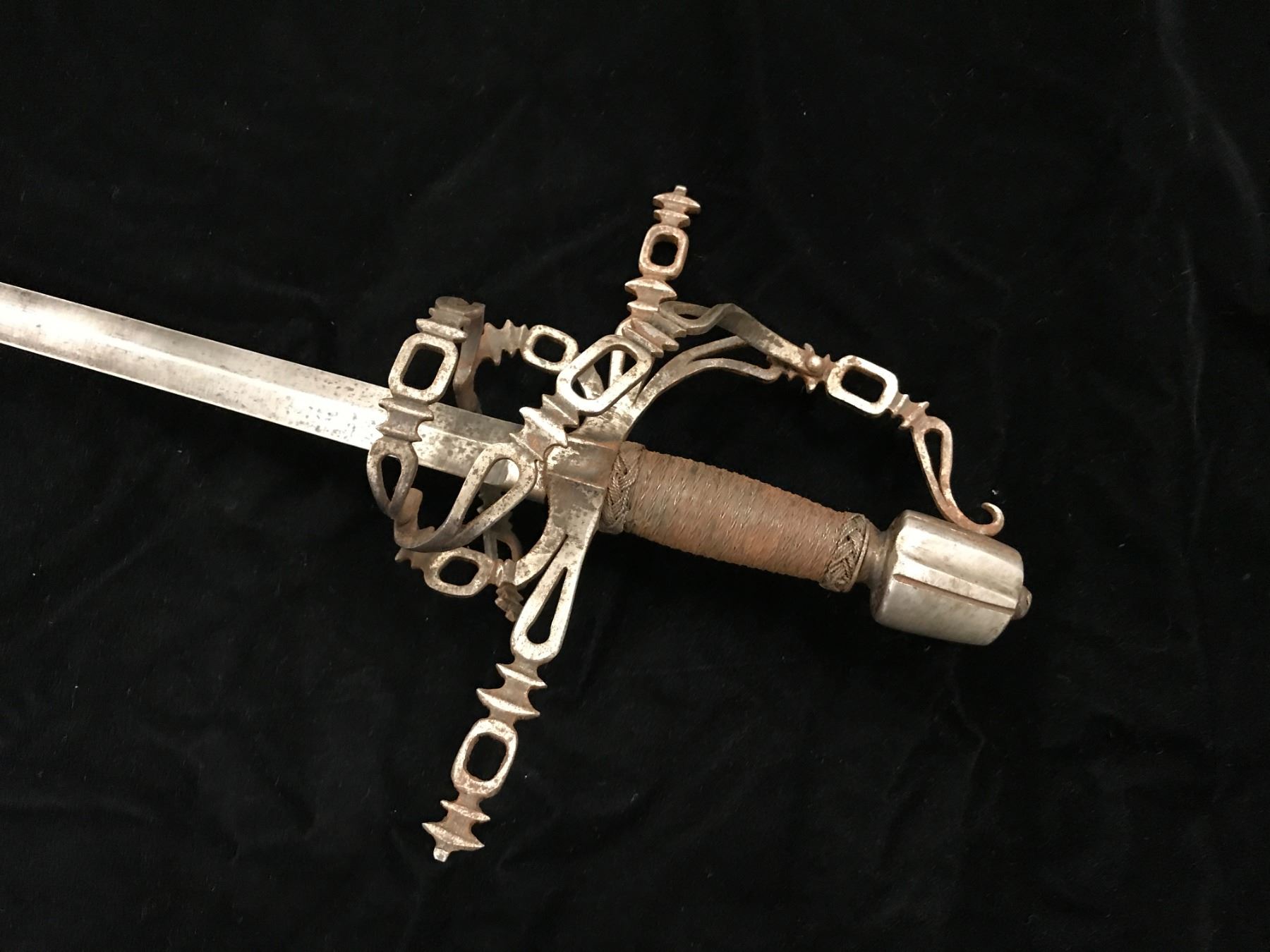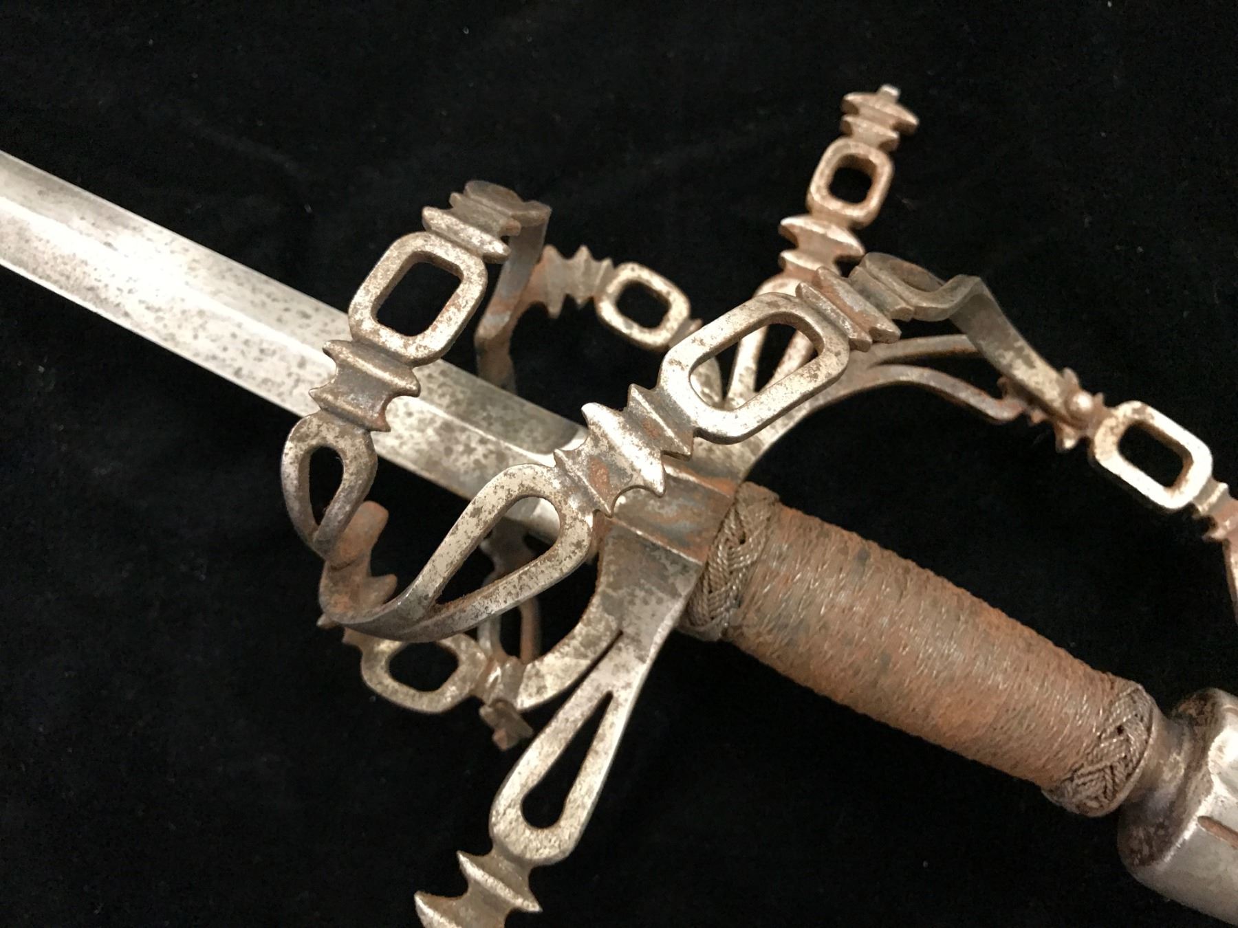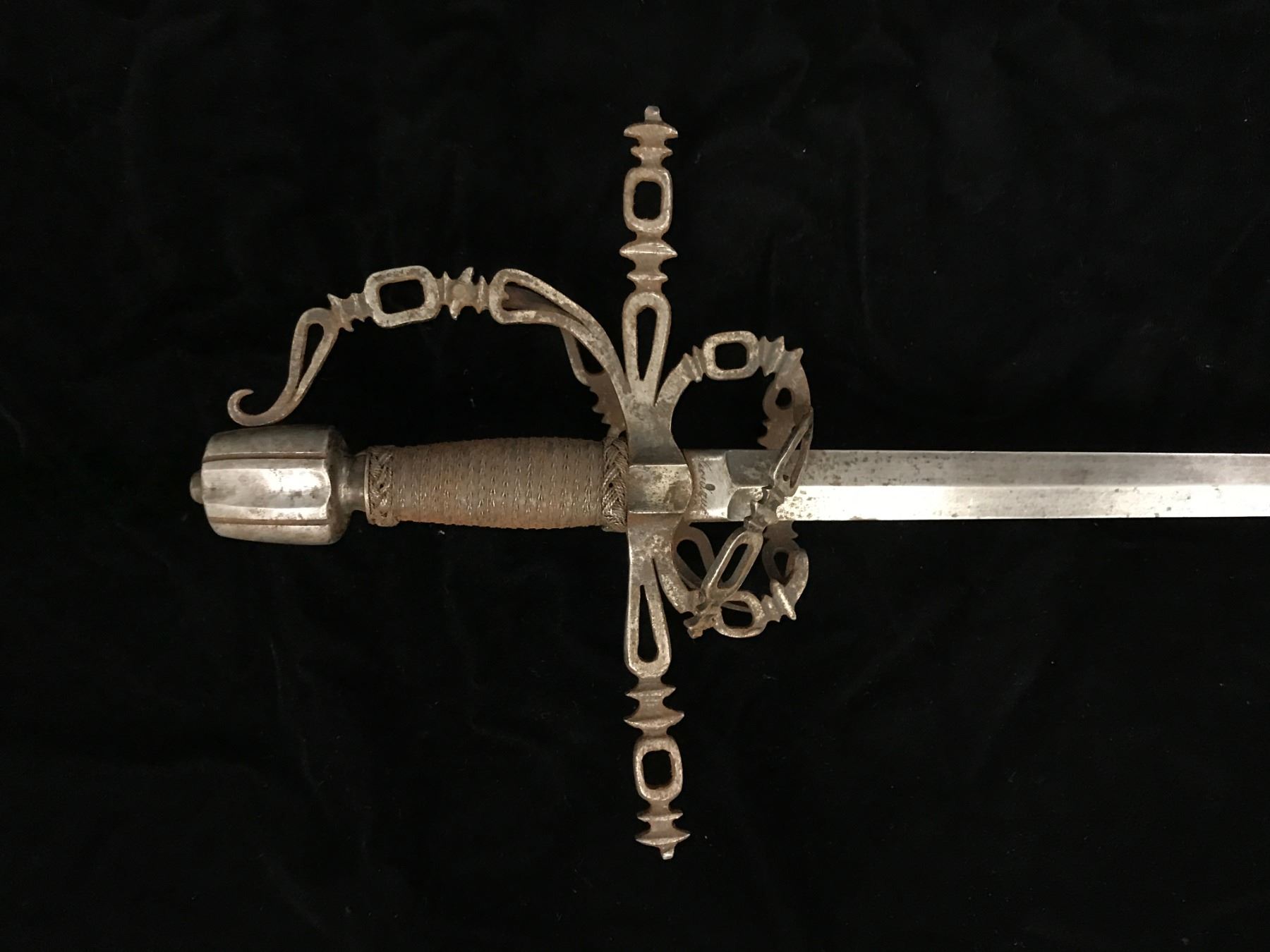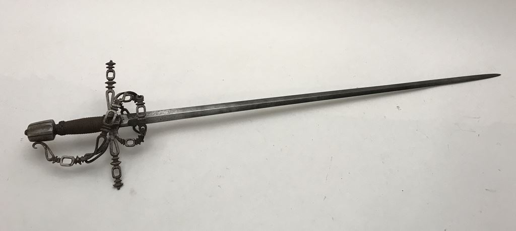Victorian rapier with fancy pierced hilt and guard. Proper wrapped grip and measures 38” overall with a 32: blade. In good condition and quality metal work. You can see how much worse represented as authentic in catalogs and on the internet priced at multiples of thousands. Est.: $600-$1200