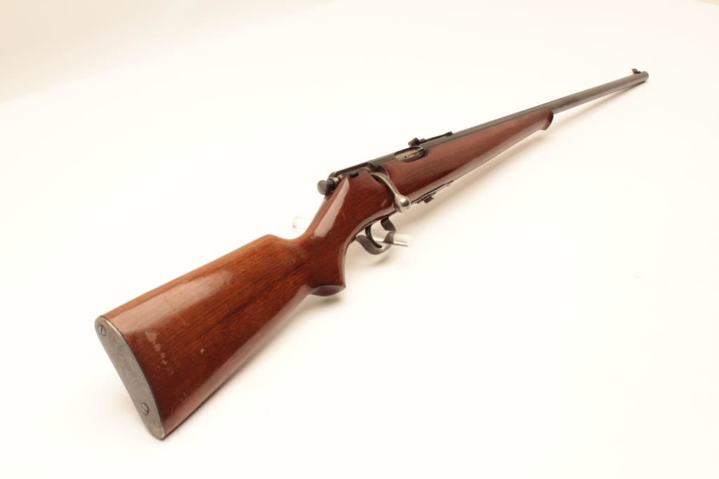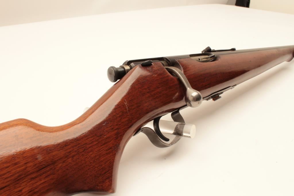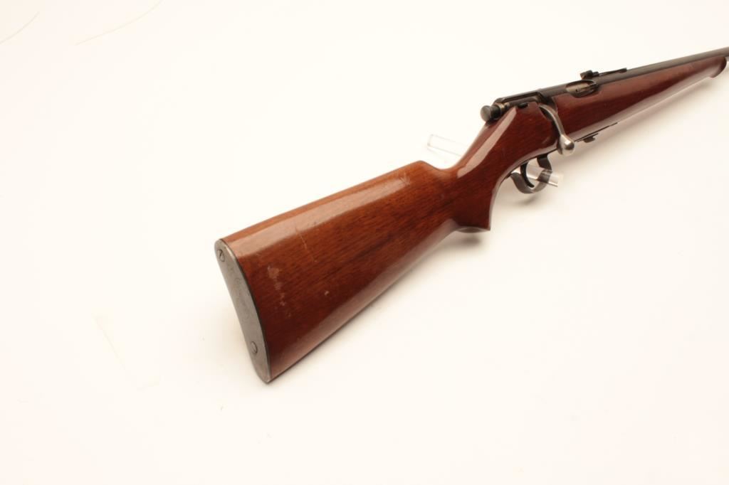 Savage Sporter Model bolt action rifle, .22LR caliber, blued finish, wood stock, S/N 110857, in overall good + condition with majority of original blued finish, good bore, good markings, crisp action and good overall stock. (Modern/PPT). Est.: $200-$400.
