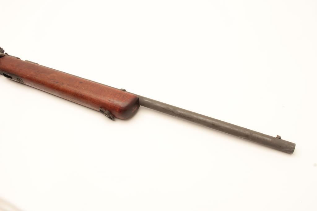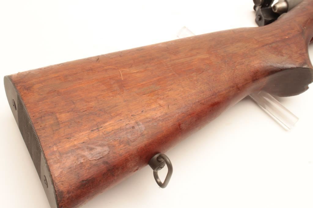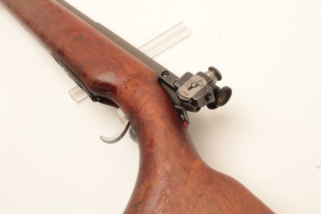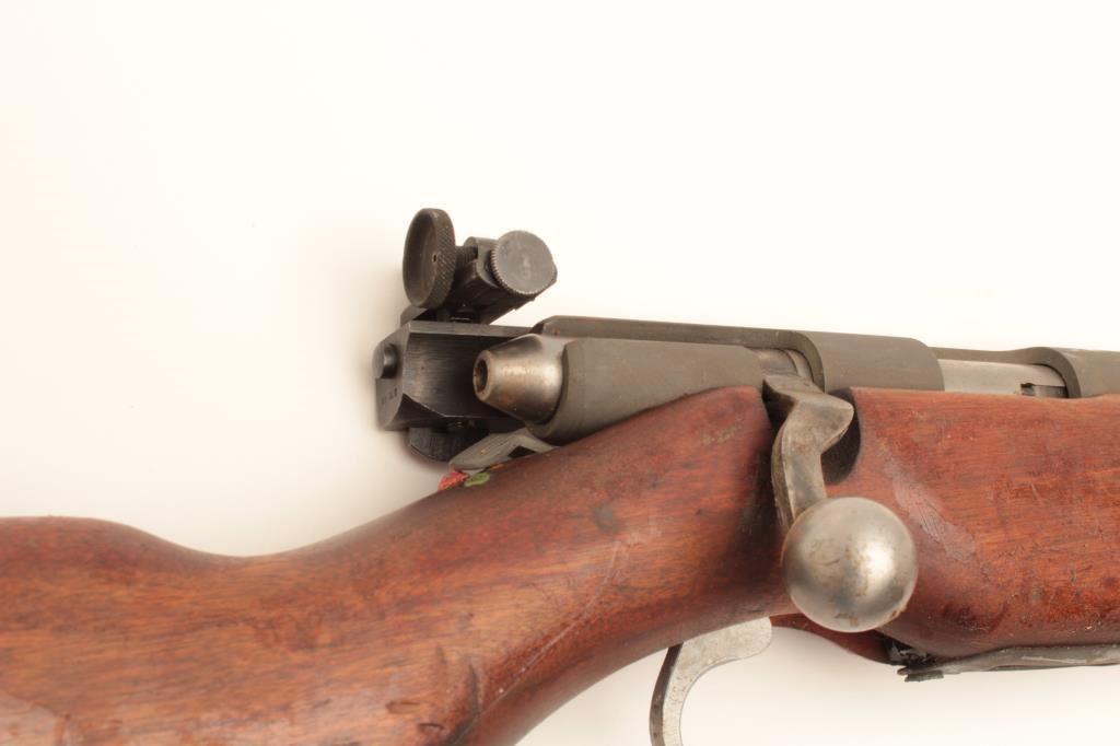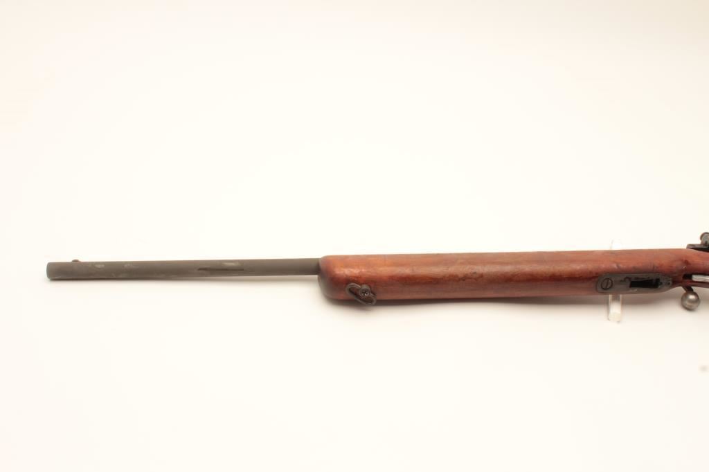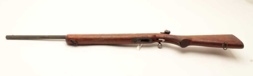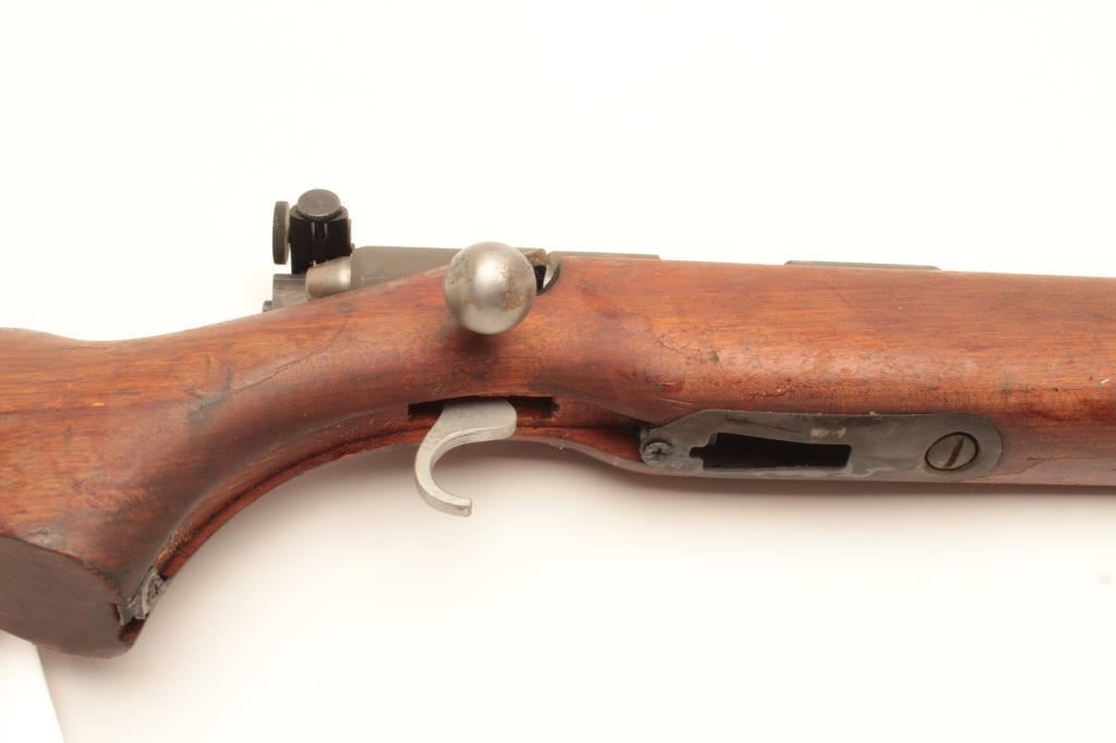 Mossberg U.S. Property Model 44 bolt action rifle, .22LR caliber, parkerized finish, wood stock, missing magazine, S/N 117616; a project gun with dark bore that may clean, good action and markings, broken trigger guard that needs replacement, finish to wood stock is compromised but could be greatly improved with a careful stripping down to a basically good wood target stock. (C&R/PPT). Est.: $150-$300.