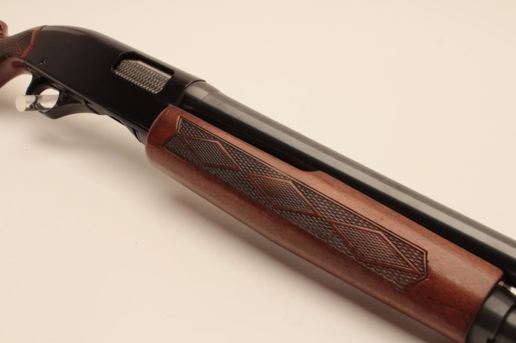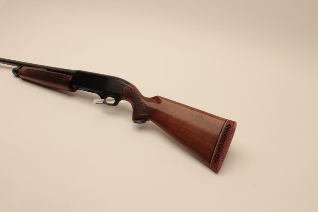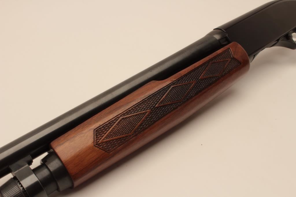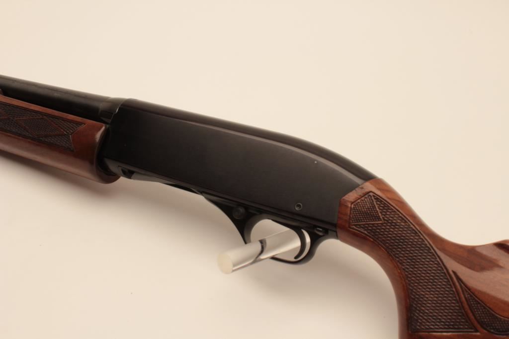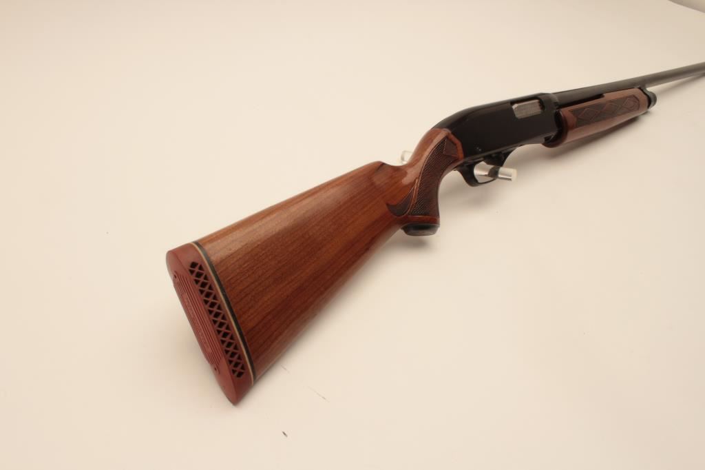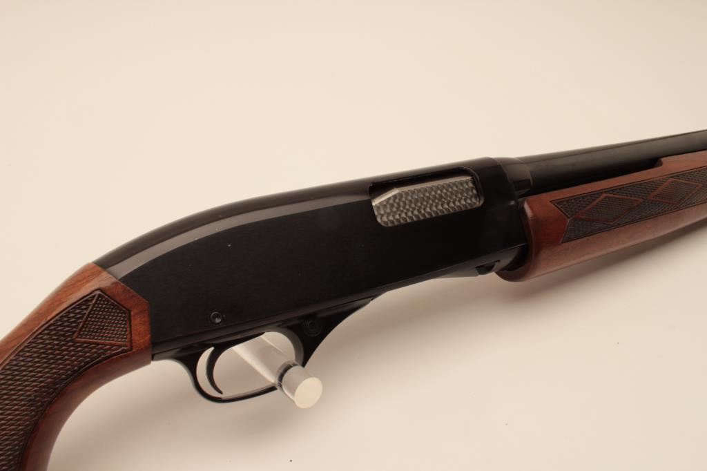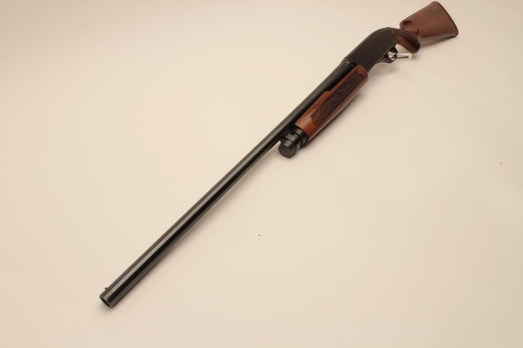 Winchester Model 1200 pump action shotgun, 12 gauge, blued finish, checkered wood stocks, S/N 302603, in overall very good to fine condition with a fine bore, majority of original finish to metal surfaces, crisp action and markings, near fine wood; accompanied by a leather soft carry case. (Modern/no PPT). Est.: $200-$400.