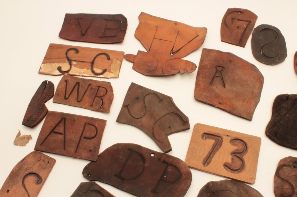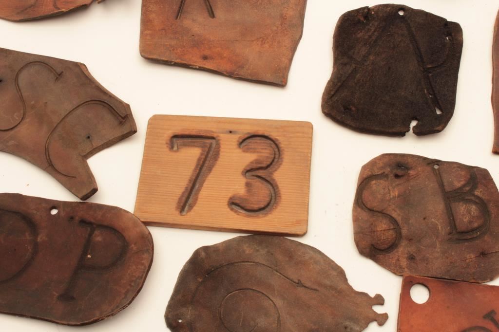 Registering Brand Lot on leather with IDs and labels on back of some examples; large lot, some California-associated; museum worthy display potential. Est.: $500-$5,000?