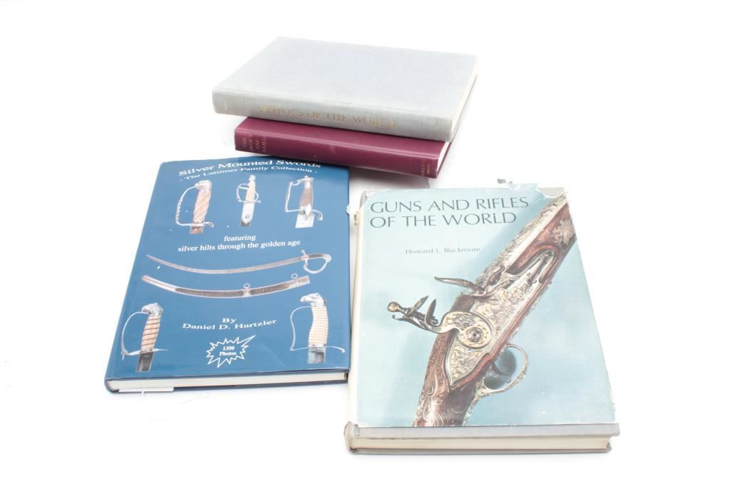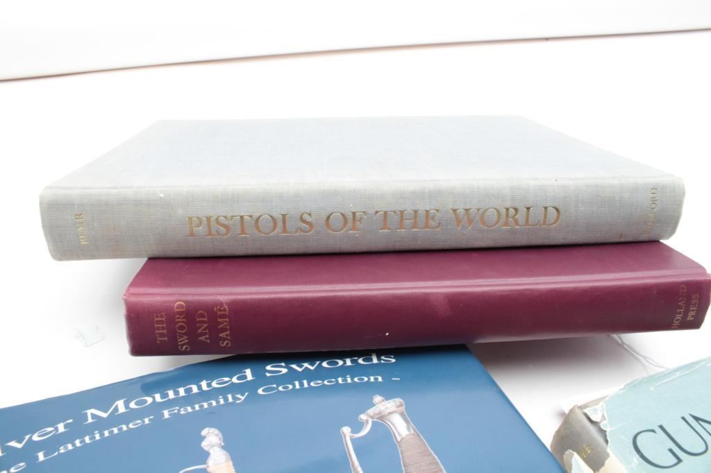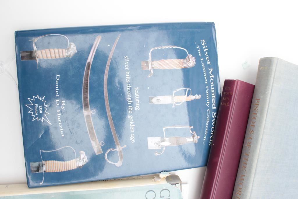 Lots of books including Latimer Collection of silver hilted swords, Blair pistols of the World, The Sword and Same and Guns & Rifles of the World. Est:$100-200
