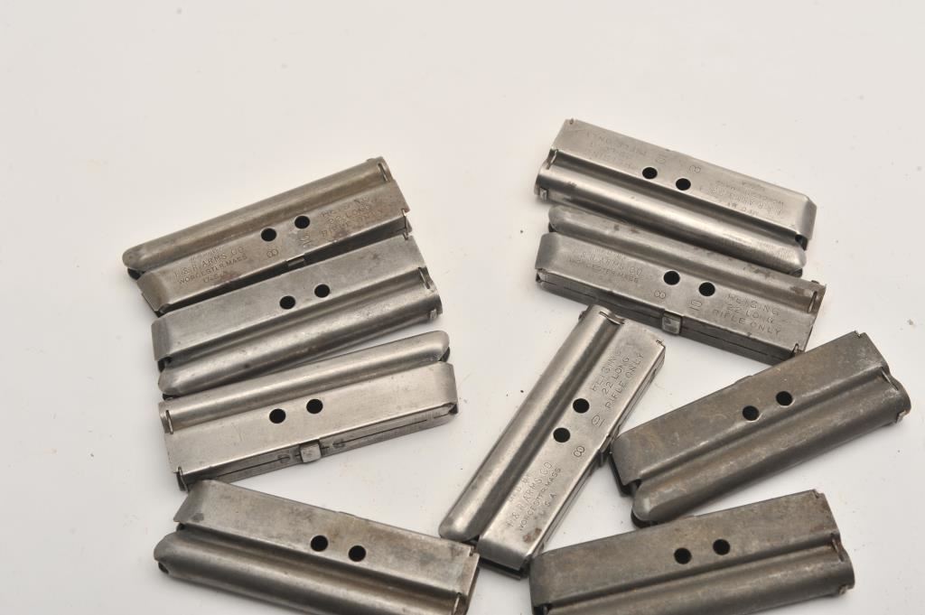 10 H&R manufacture Reising .22 caliber mags. Vintage WWII to Korean War for training type semi-auto rifle used by Marine Corps. Est.: $200-$400