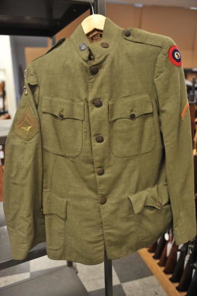 WWI aviation uniform “Rainbow” 3rd division. Corporal with patches and pants. Very good condition. Cap dated 1918. Est.: $250-$500