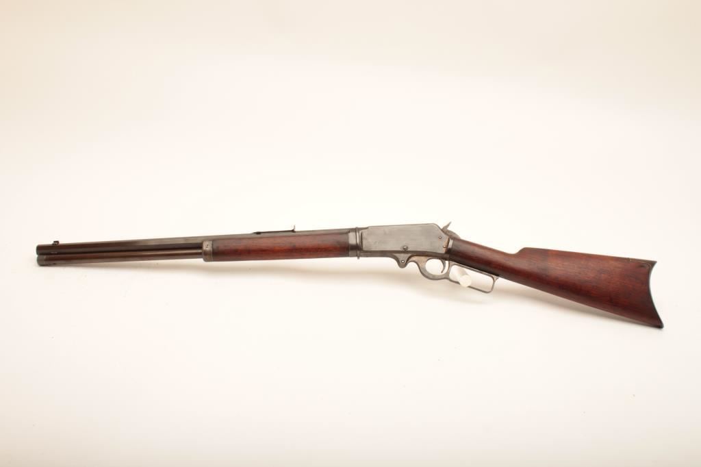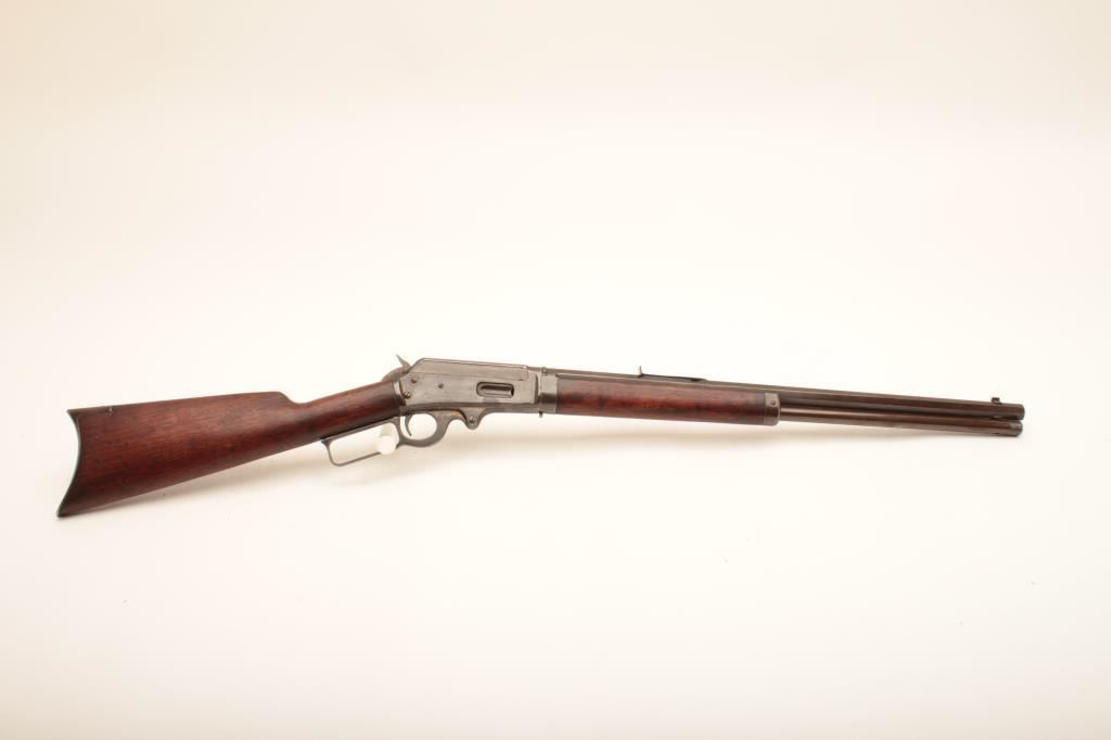 Marlin Model 1893 lever action takedown rifle, .30-30 caliber, 21” barrel, brown patina, wood stocks, S/N 220291; overall good condition with good bore, crisp action, good markings and fair to good wood. (C&R). Est.: $300-$600.