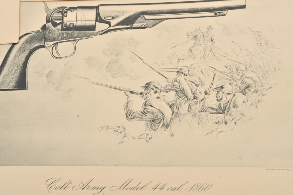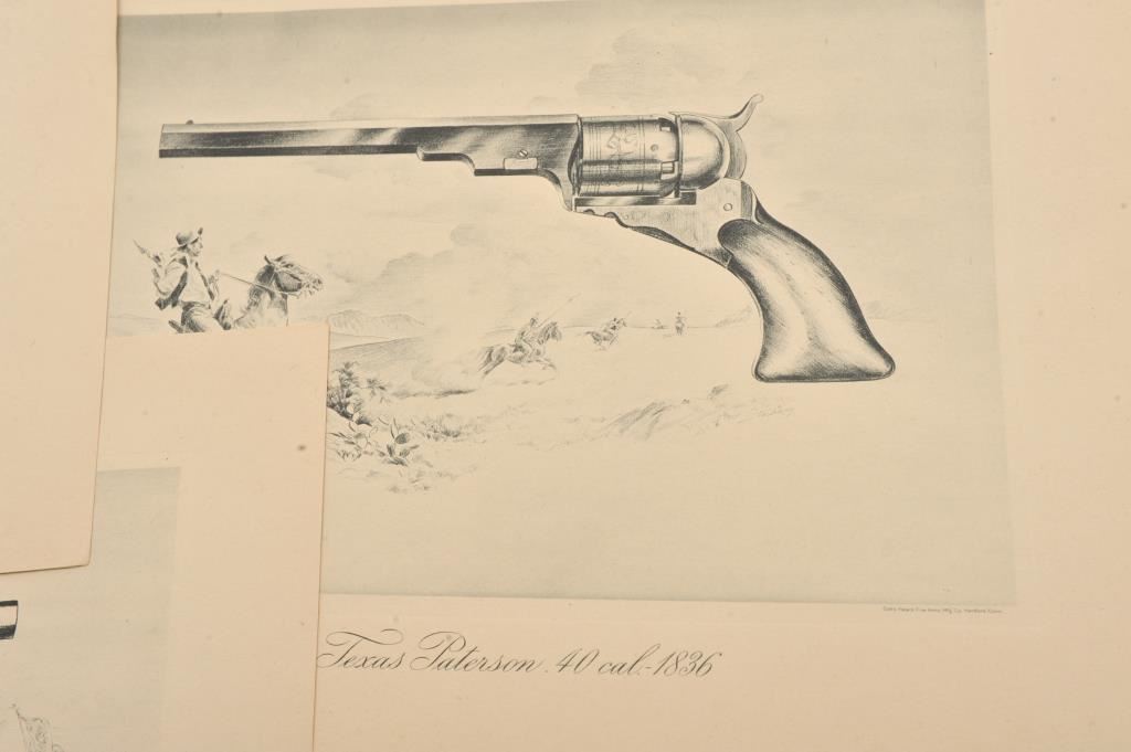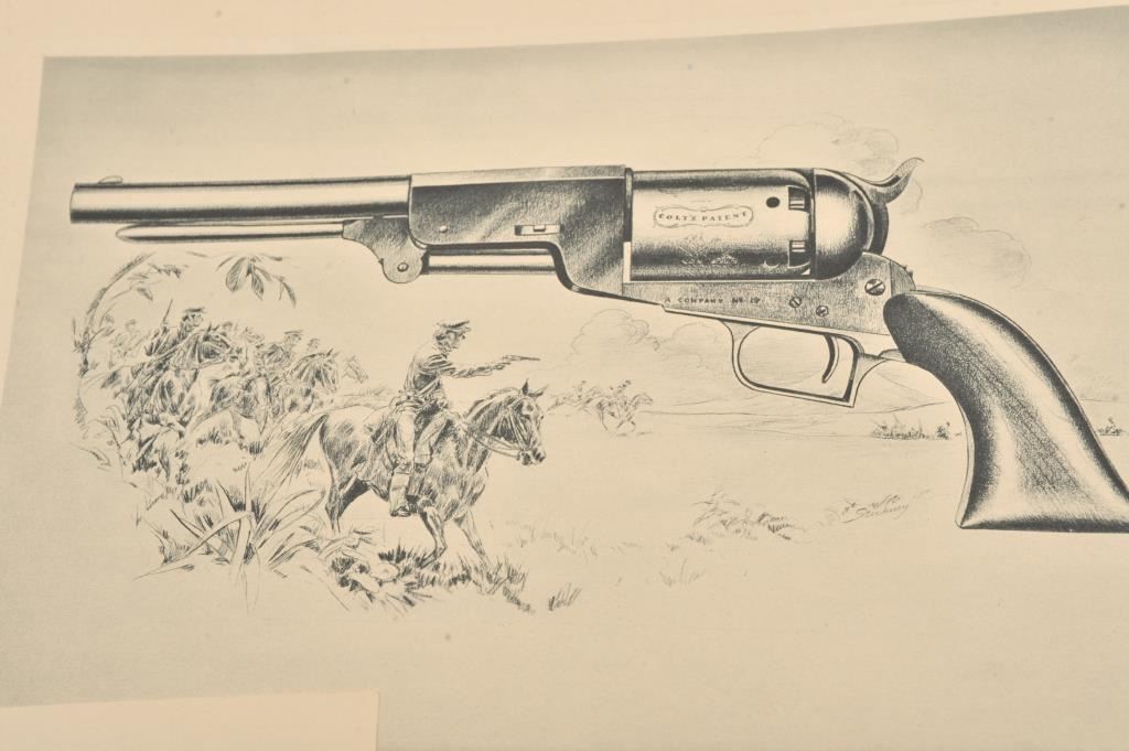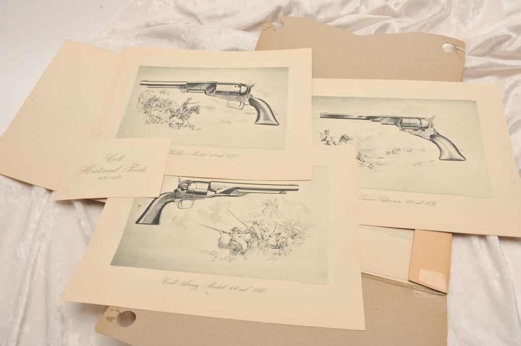 Colt prints in folio from Colt Firearms Company with July 16, 1944 date cancelled stamp. 6 prints and a pamphlet. Excellent condition. Est.: $200-$400