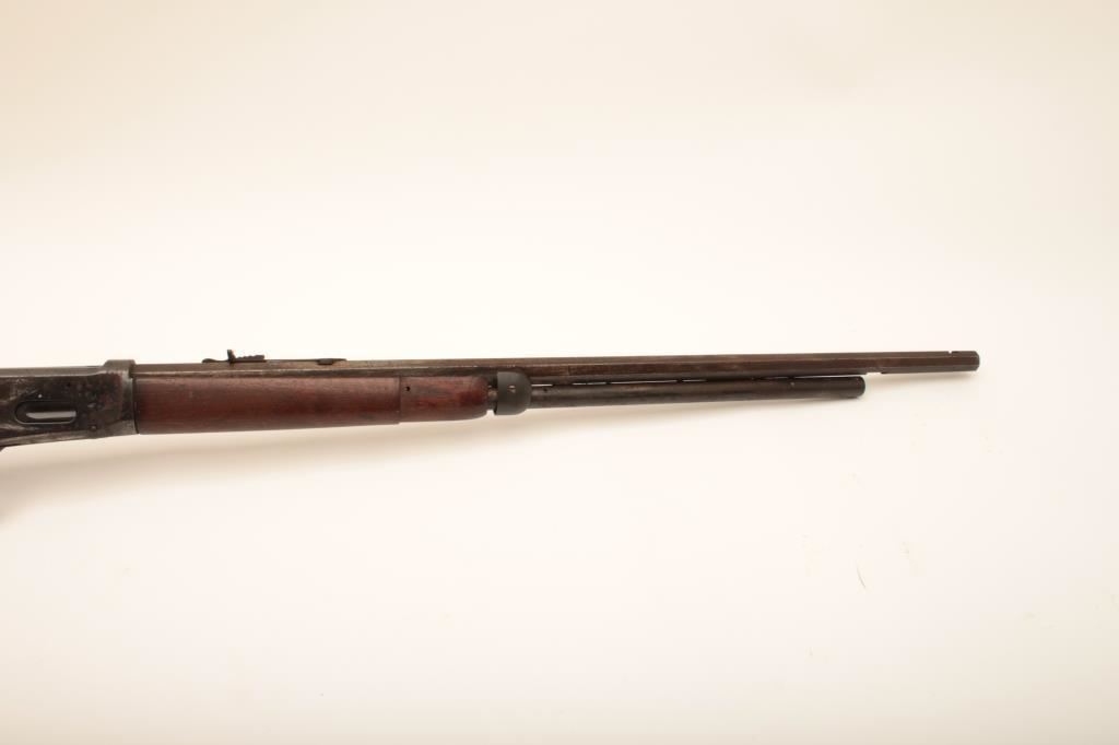 Winchester Model 1894 lever action rifle, .30 WCF caliber, Serial #677793. The rifle is sold as parts with a 26” octagon barrel missing the front sight and the rear sight is a later replacement. The action is not working and the metal surfaces show light to moderate surface rust due to poor storage. The smooth wood fore end and butt stocks are both replacements and do not fit properly. The bore is rough, the action non-functioning and the markings are legible. Est.: $175-$350. (C+R).