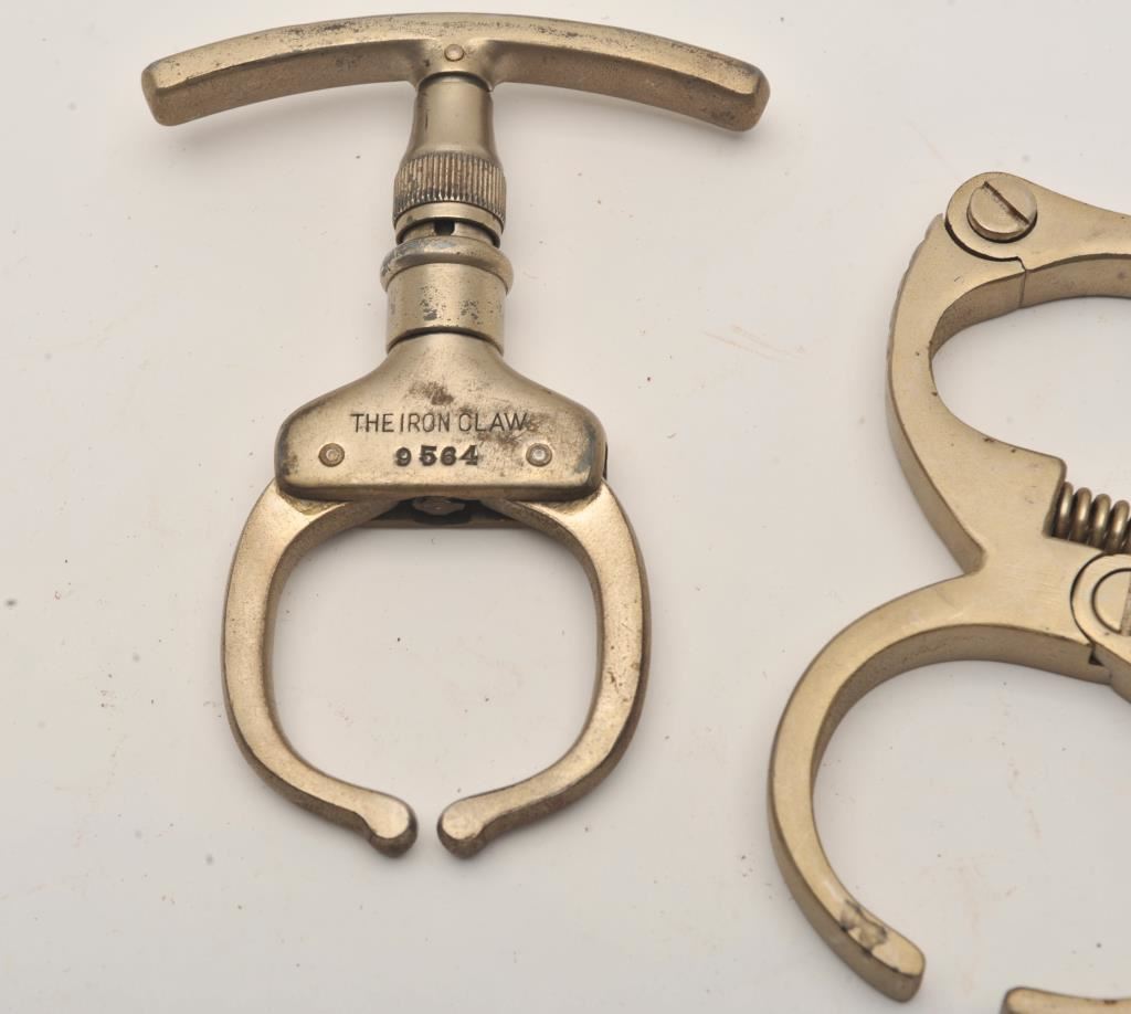 Lot of 2 vintage “come alongs” including an Argus Mfg. Co. “Iron Claw” and an un-marked “nipper” likely of European manufacture. Est.: $150-$300.