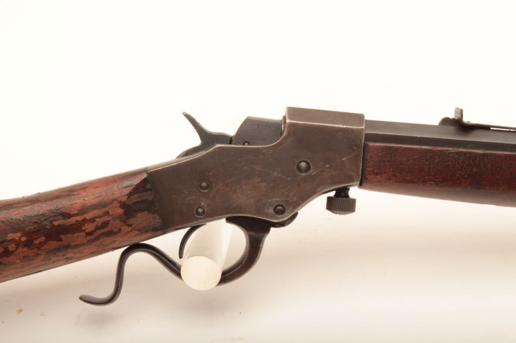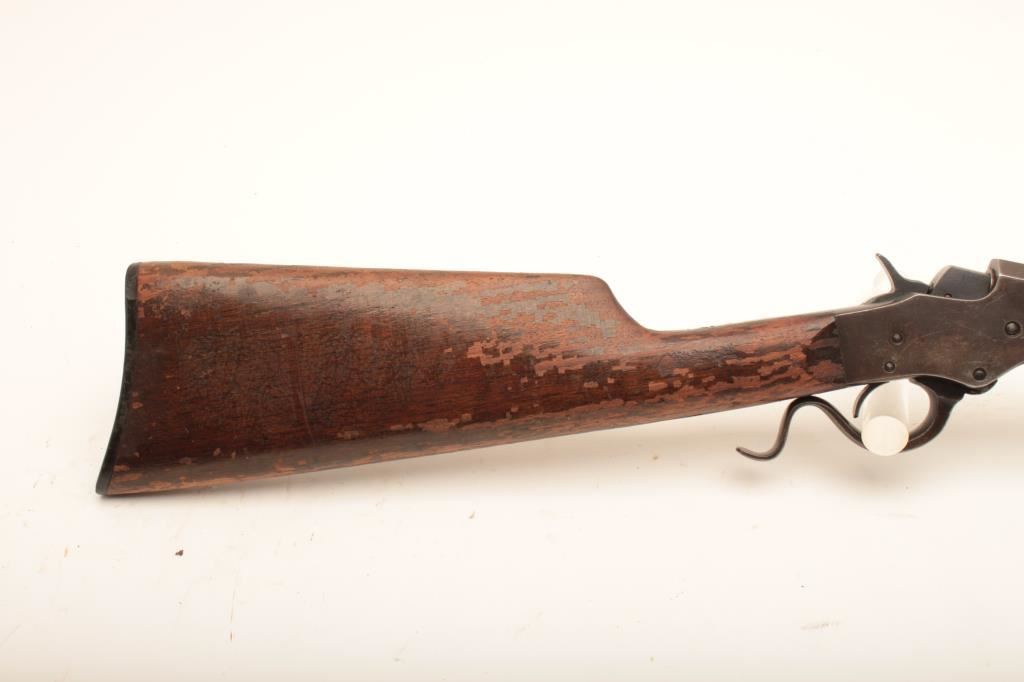 Stevens Favorite Model 1915 single shot rifle, .32 Long caliber, 24” octagon barrel, blued finish, wood stocks, S/N M998; overall good condition with majority of blued finish remaining on barrel, very good bore, crisp action and markings, wood butt stock shows flaking losses to finish but wood is sound and could benefit from refinishing. (C&R). Est.: $125-$250.