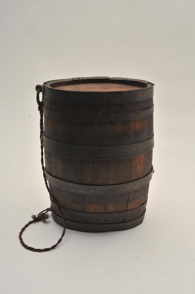 American barrel canteen from revolution to mid-19th century. 10” x 7”. No spout. Good condition. Est.: $200-400