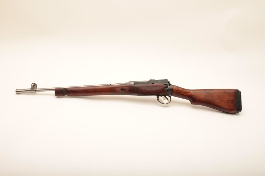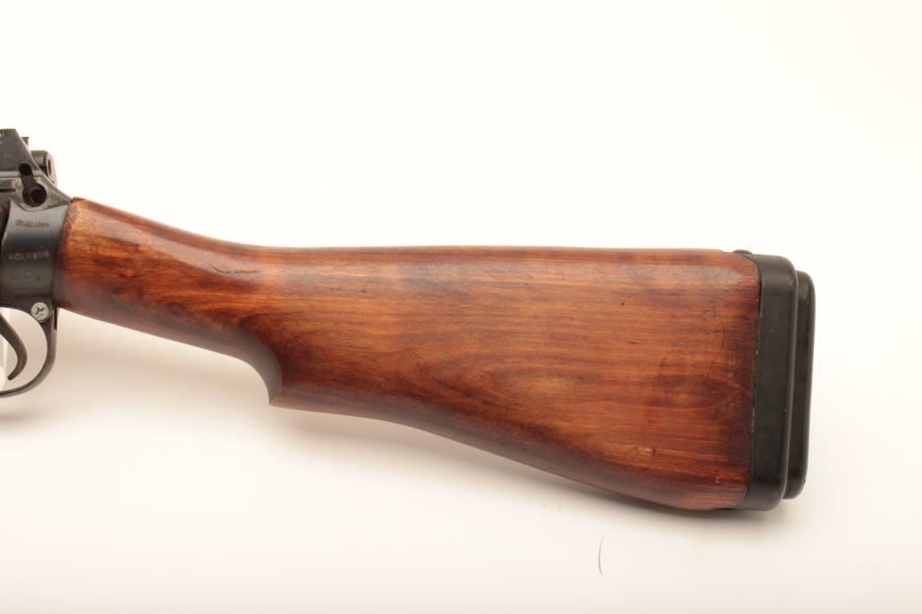 Lee-Enfield No.4 MKI bolt action sporting rifle, .303 British caliber, Serial #40L4003. The rifle is essentially a parts gun with the barrel having been added in the white from a jungle carbine. The carbine should be inspected by a competent gunsmith and is missing significant parts. The smooth wood stock is in fair condition. The bore is good, the action is non-functioning and the markings are legible. Est.: $40-$80. (C+R).