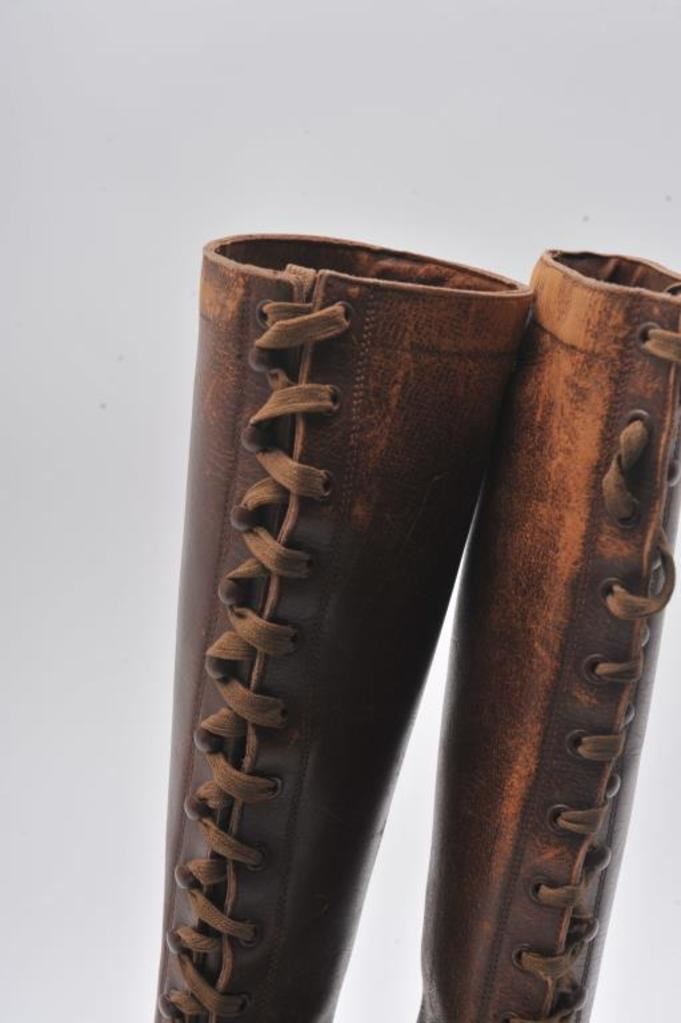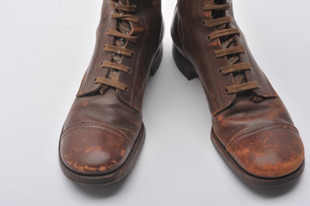 Black hi-top jack boots. Size 58 made by Welix. WWI-WWII. Good plus. Also included is WWI American officer’s boots that belonged to Lt. Douglas Wolfe. His uniform and effects in other lots this auction. Est.: $100-$200