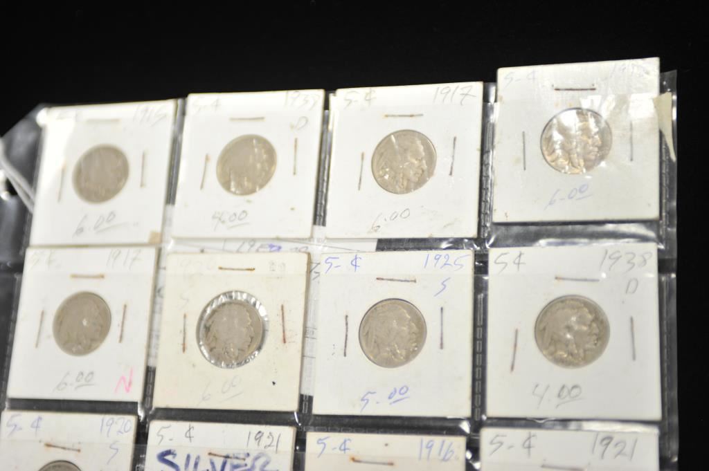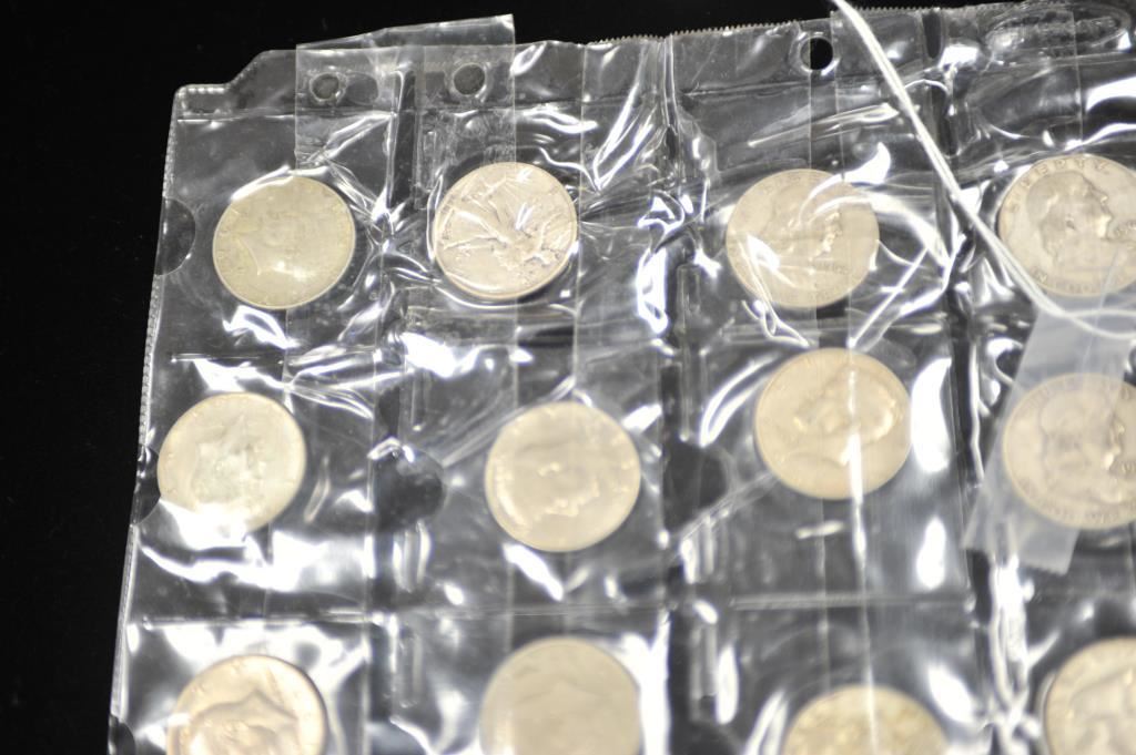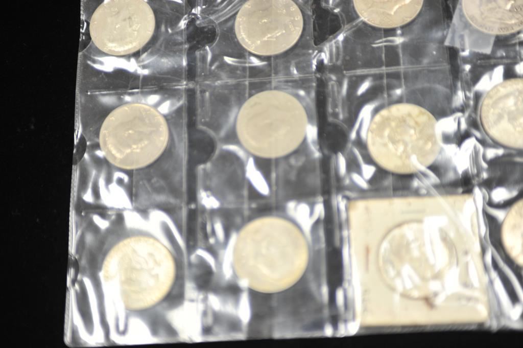 Lot of U.S. half dollars. Franklins, walking liberties, Kennedys. 17 in varied circulated conditions. 1941-66 dates. Also 12 Eisenhower dollars circulated. And 20 Indian head nickels. 1915-1938. Est.: $125-$250