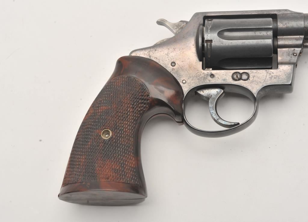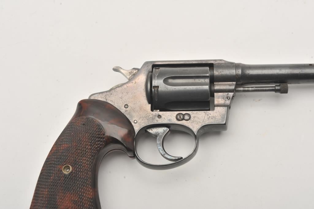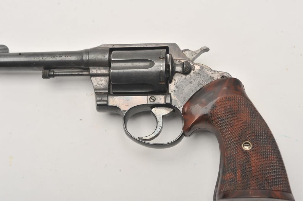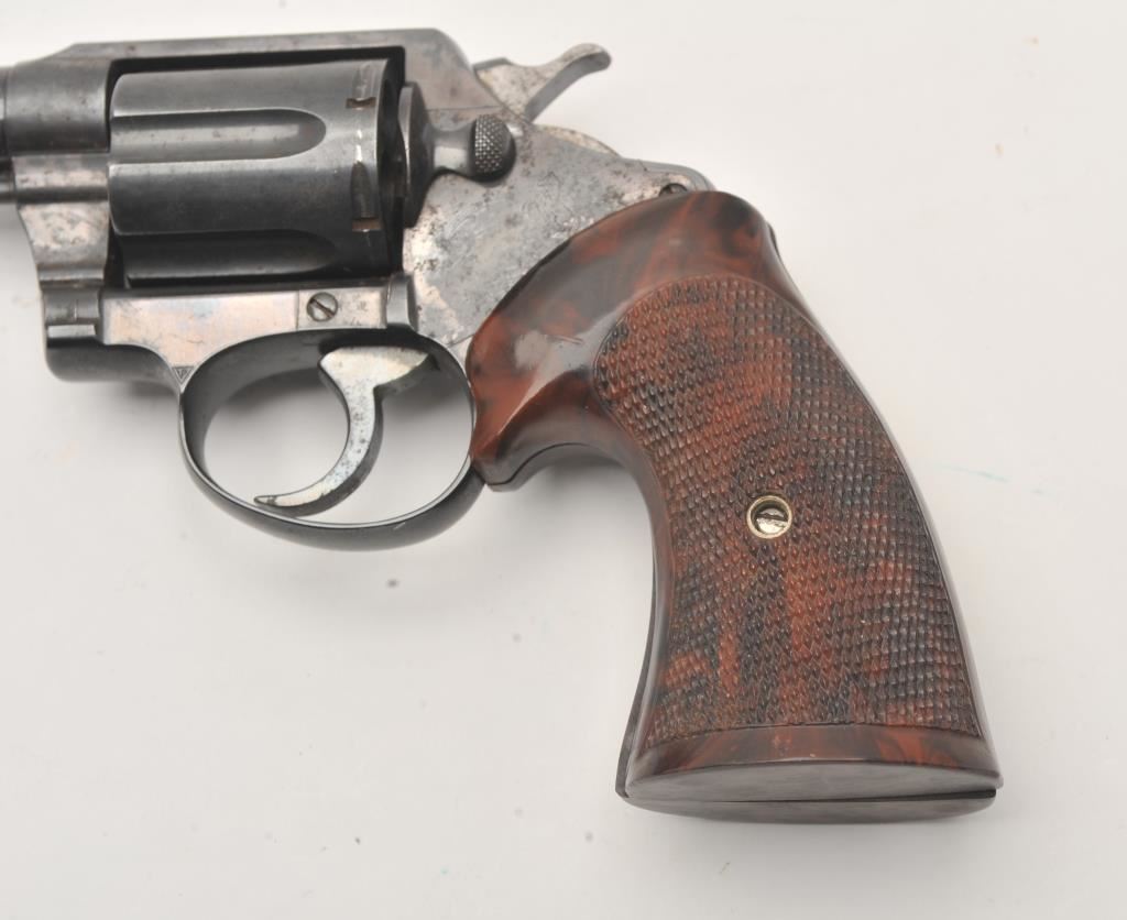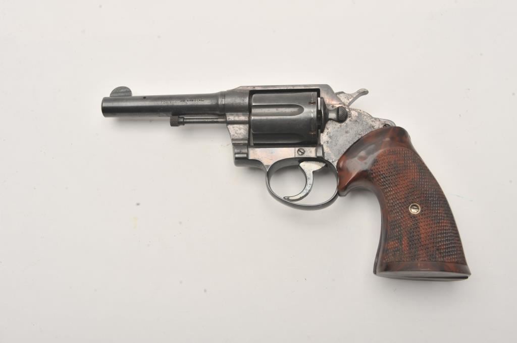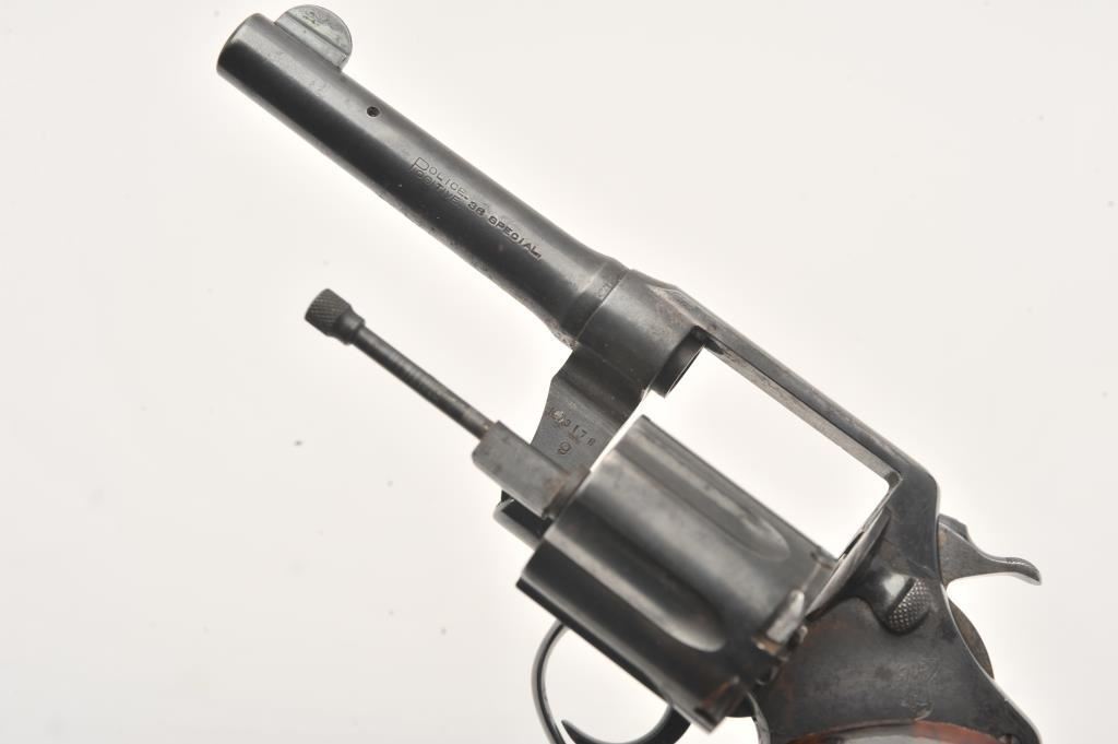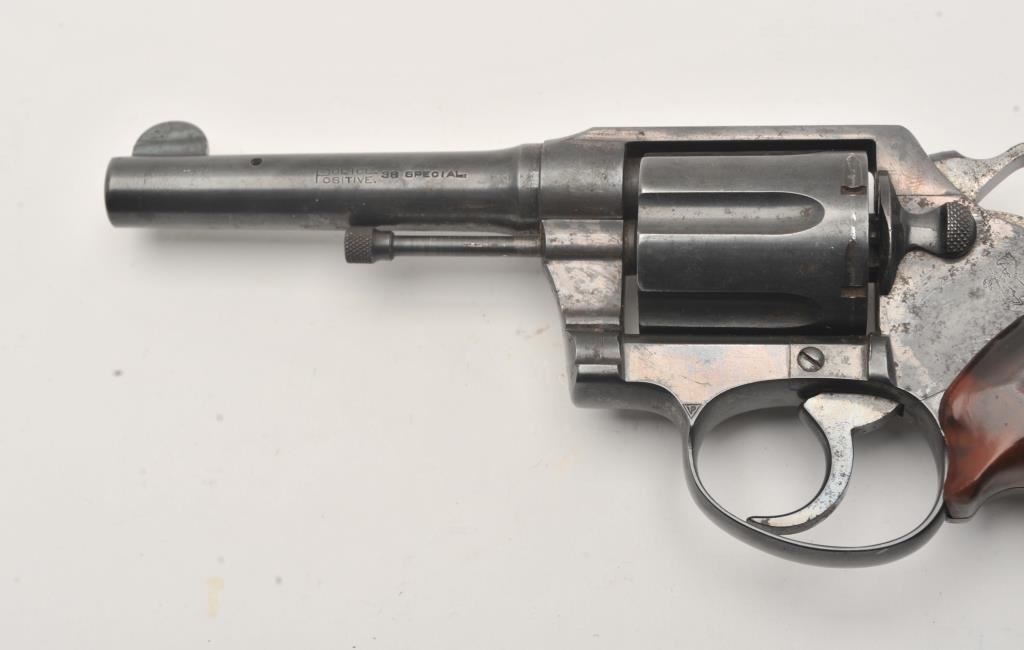 Colt Police Positive revolver, .38 Special caliber, Serial #113178. The pistol is in good overall condition with a 4” barrel. The metal surfaces retain the majority of their blue finish with light surface erosion. The checkered plastic aftermarket grips are in good condition. The bore is good, the action is crisp and the markings are legible. Est.: $125-$250. (C+R).
