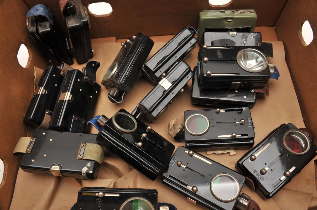 Lot of German WWII flashlights, good to excellent, some for signaling. 17 pieces. Lifetime collection. Est.: $175-$350