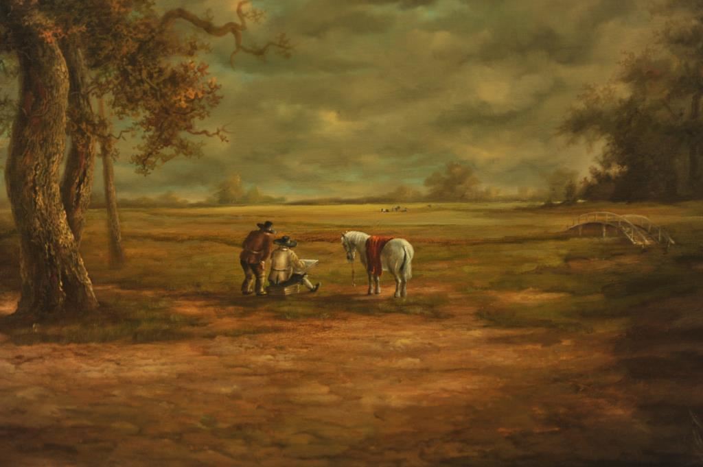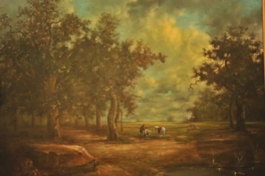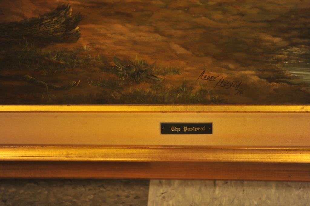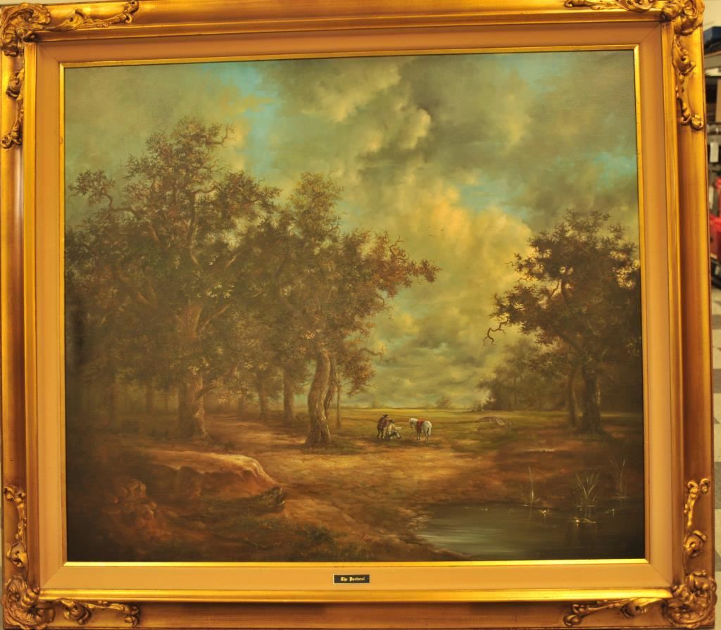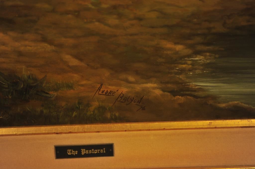 Huge finely framed oil on canvas entitled “The Pastoral” signed Andre Balyon ’76; approximately 54” x 58” overall with beautiful detail and colors. Est.: $500-$1,000.