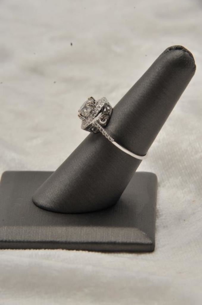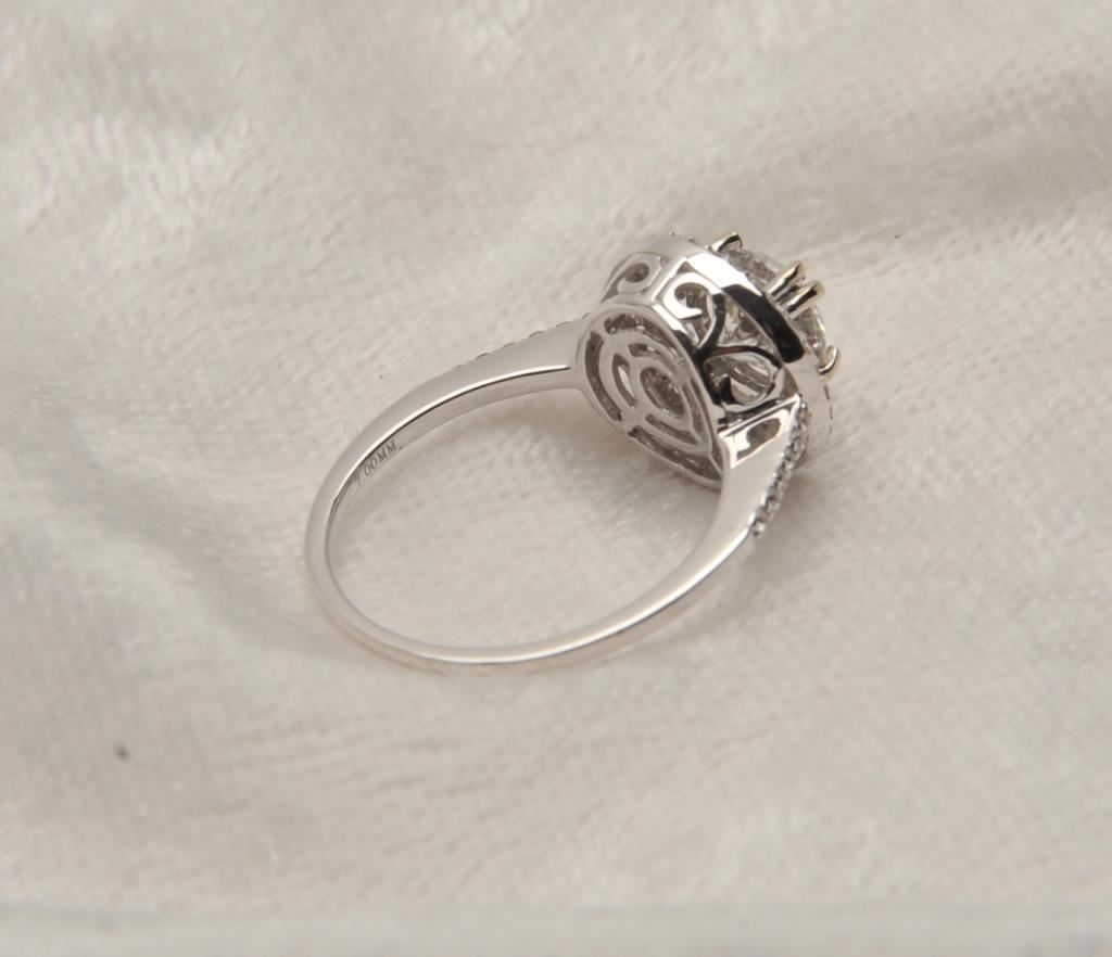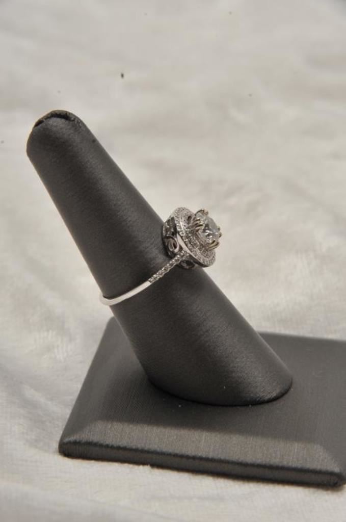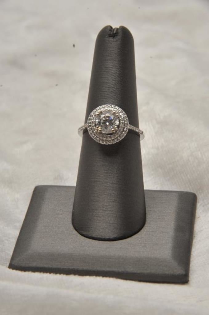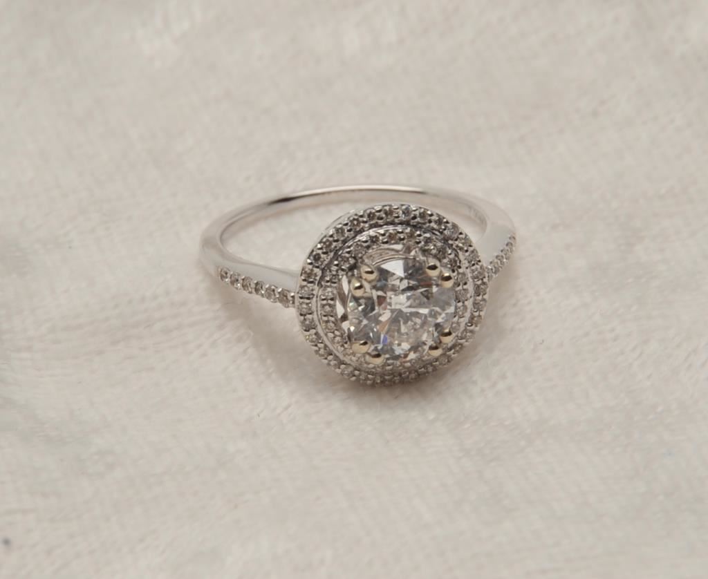 One round brilliant diamond weighing approx 1.55ct (J -SI 2)set in a delicate double halo ring with 0.27ct diamonds in 14k white gold Est:$3500-7000
