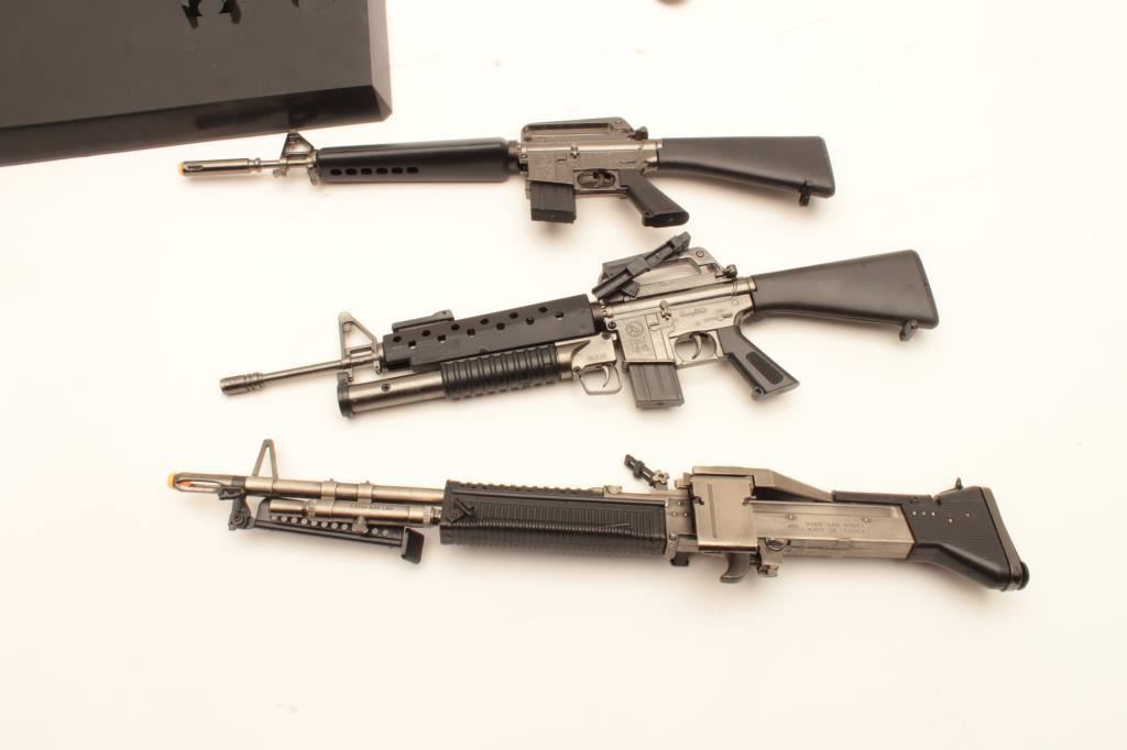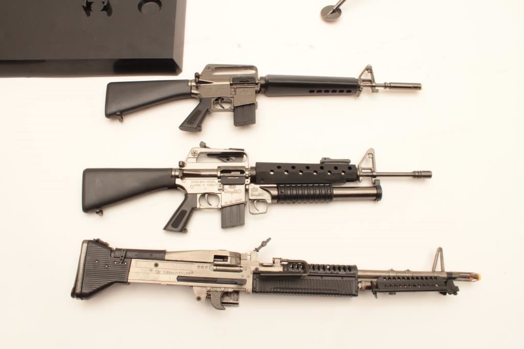 Lot of 3 die cast miniature models of 2 M-16s and an M-60. Est.: $150-$300.