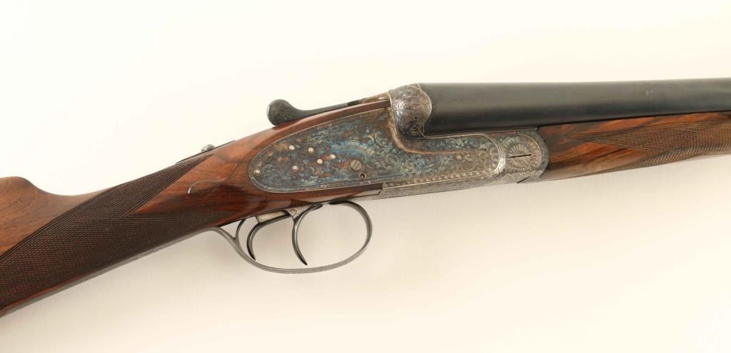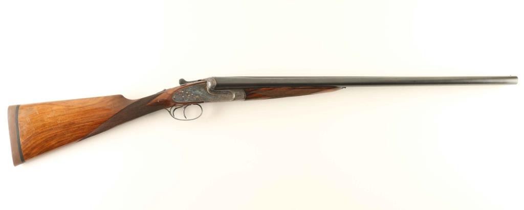 SN: 9017 Superb quality Spanish made side-by-side double barrel sidelock shotgun chambered for 2 3/4" 12 gauge shells, manufactured circa 1965. Features 26" barrels with a raised matted sighting rib, brass bead front sight, ejectors, treble grip action with side clips, fully & finely engraved case hardened receiver with hand removable sideplates, double triggers with articulated front trigger, sliding tang safety, fancy checkered figured wood splinter forend and straight grip shoulder stock with Decelerator recoil pad. Stock dimensions: drop at comb 1.4", drop at heel 2.1", length of pull 14 5/16, and length of pull to the wood 13 3/8". The barrels are marked "F. DA PEDRO ARRIZABALAGA - EIBAR" and "ARMERIA. DIANA TURBA. S.L.". The receiver exhibits vibrant case colors with mild carry wear on underside. The barrels retain approximately 90% of their matte blued finish showing light muzzle wear, some scattered blemishes and a streak of finish loss on the left barrel at the 11 o'clock position above the forend & receiver. Action is sound, the bores are excellent, markings are very good and the wood stocks are very good with small blemishes & some very minor losses in the forend. Condition in NRA Very Good. ***C&R firearm***
