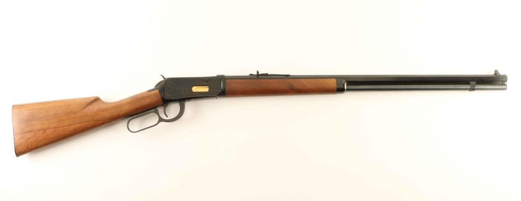 Lever-action rifle. This is the Model 94, Winchester classic. 99% blued finish. 26" octagonal barrel. Bore appears excellent/bright. Laminated walnut stock, and forearm. Action is smooth/tight. Etched receiver. gold covered loading plate. A couple of very minor scratches to the wood/metal, otherwise a like new conditioned rifle. NRA Condition-Excellent. Modern Firearm.