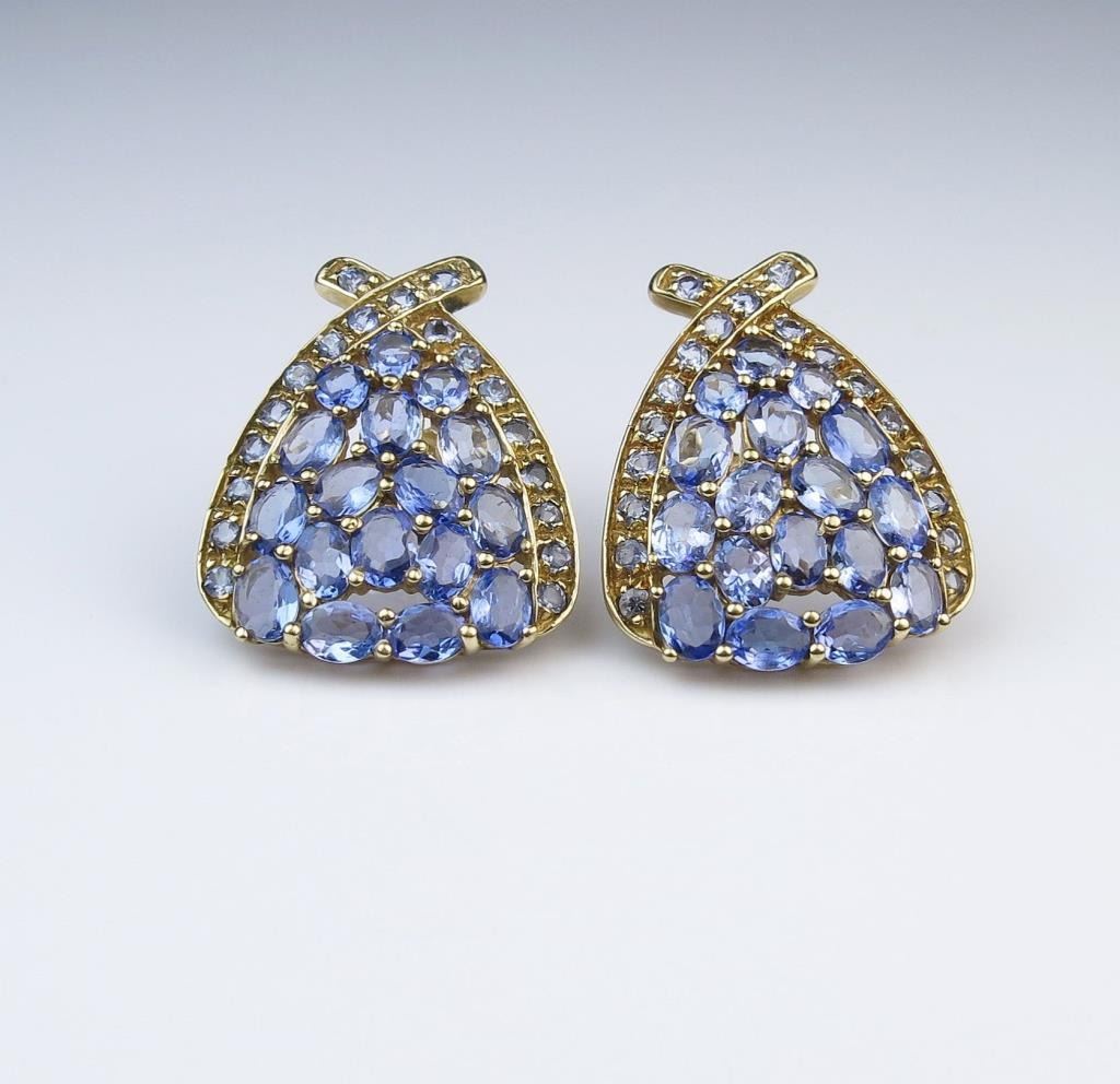 Feature 108 oval and round cut tanzanites weighing approx. 5.00-6.00 carats set in 10 karat yellow gold.