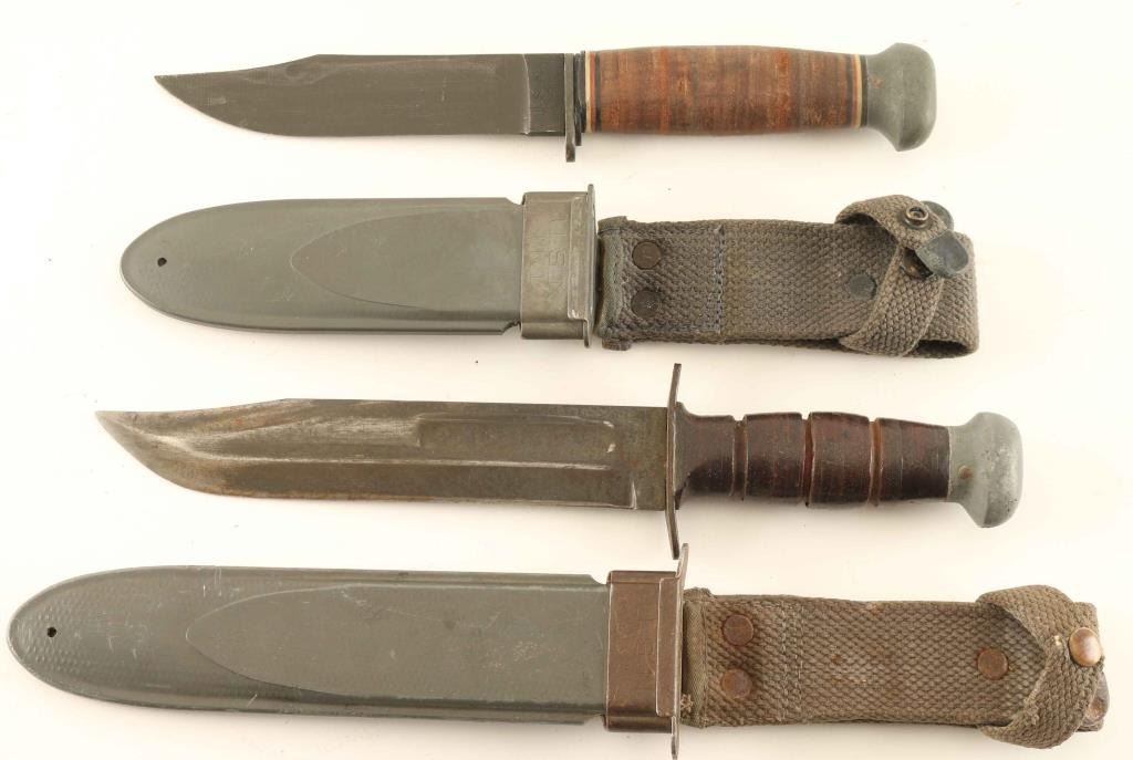 USN Marked Kbar knife in a USN marked scabbard and USN MK1 Knife with USN marked scabbard.
