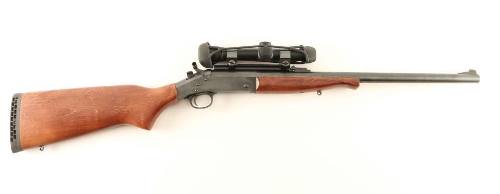 Single shot, break-top rifle. 99% blued finish. Wood stock, and forearm. 22" barrel. Bore appears excellent/bright, but a little dirty. Action is smooth, and locks up tight. Stock has recoil pad, and sling swivel studs. Mounted with a Burris 2 3/4x scope with Weaver rings. Some very minor scratches to the wood and metal, but a nice conditioned rifle. NRA condition- very good, plus. Modern firearm.