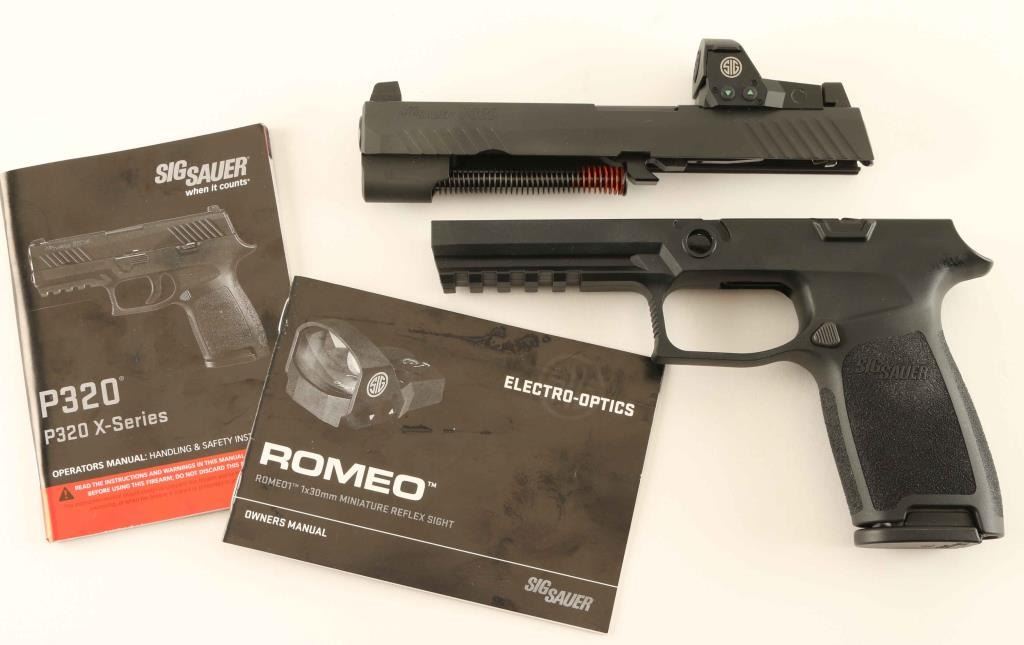 Full size conversion kit for the Sig Sauer 320 pistol, includes the Sig Romeo 1x30 miniature reflex sight.