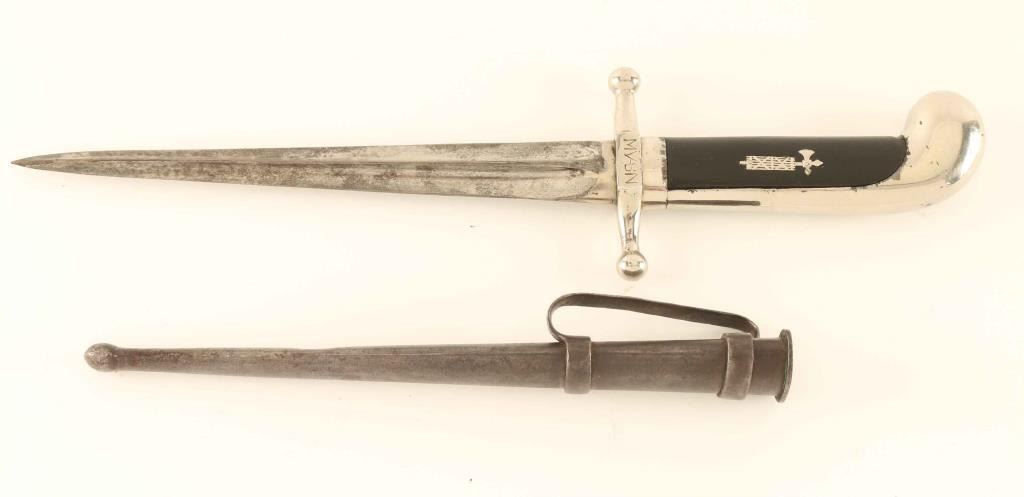 Dagger, marked MVSN F709 with correct metal scabbard, very rare.
