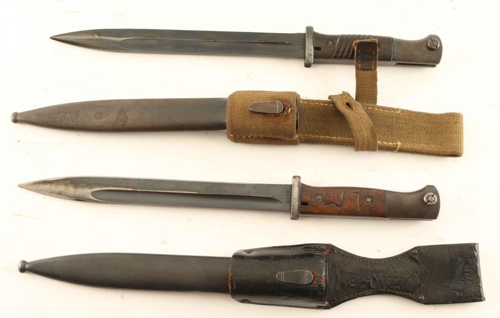 (1) s-239G marked mismatched blade and scabbard and leather frog "LM" in wood grips and waffenamptf removed (1)JWH marked matching number with bake a lite grips with Africa Corps webbed frog.
