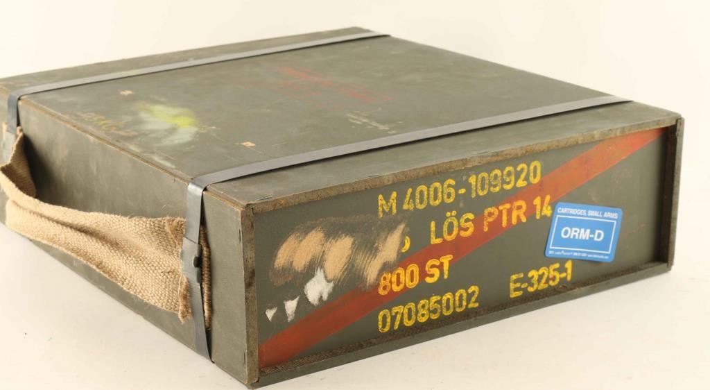 Wooden ammo box with 800 rounds of 6.5 x 55 Swede. wooden bullet training ammo. Ammo box never opened.