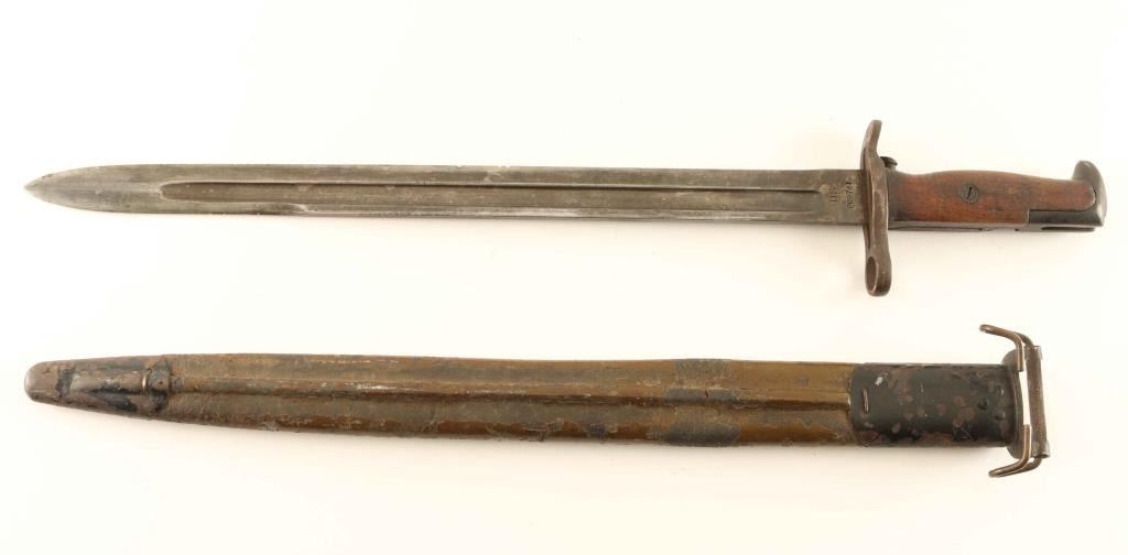 Blade marked 'SA' with flaming bomb and '1907', 'US' and '209741 on opposite side. Includes scabbard with belt attachment. Both show use and wear.