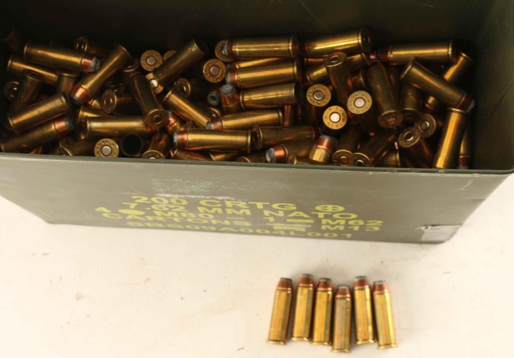 Small ammo can approx. half full of a mix of reloaded .44 Magnum rounds and 44 Mag brass