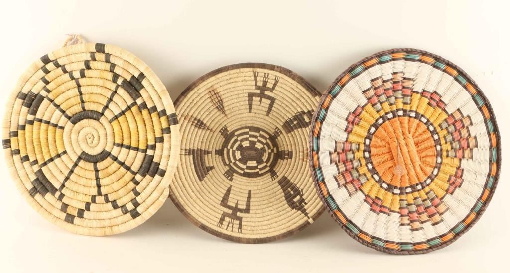 (2) Hopi and (1) ethnic with animal effigies. 10 1/2" and 11 1/2" dia. all in good condition.
