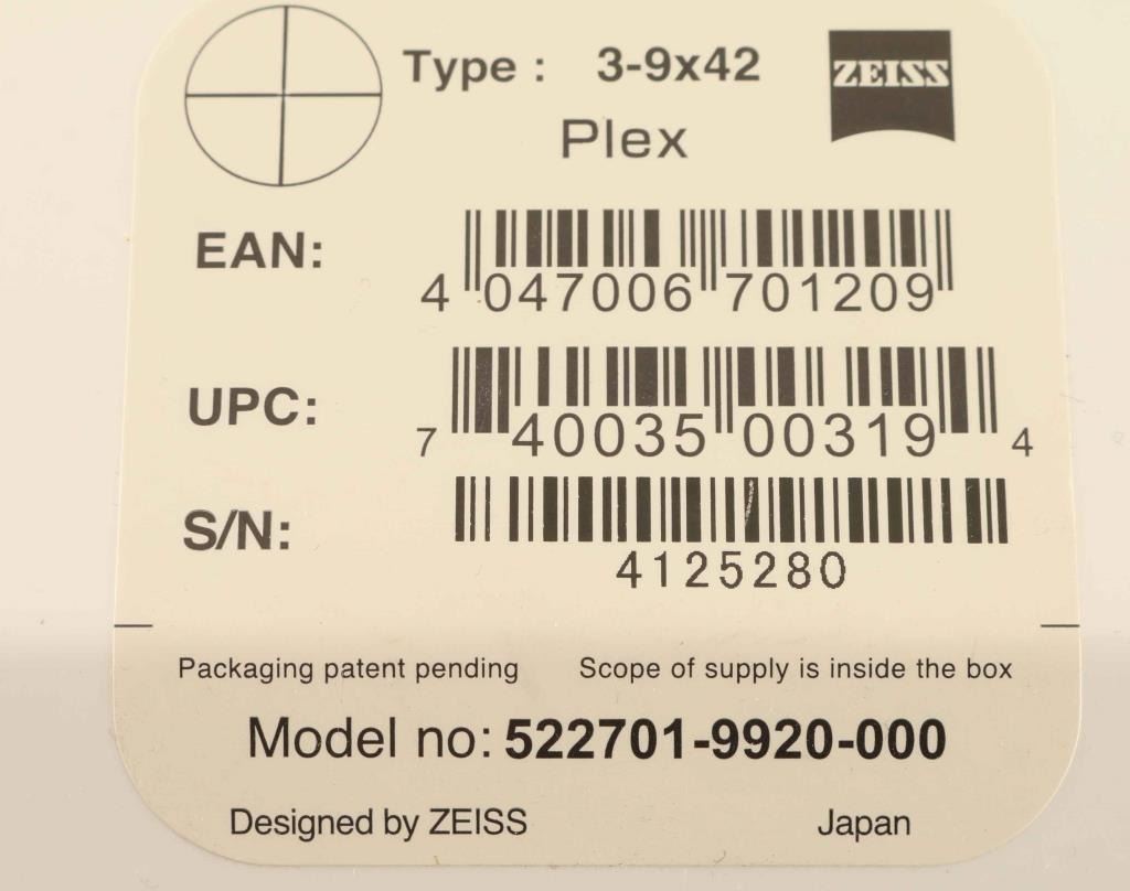 Z-Plex Reticle with a 42mm objective lens dia., MC Anti-Reflective Multicoated, 1/4 MOA Impact Point Correction. Like new in box.