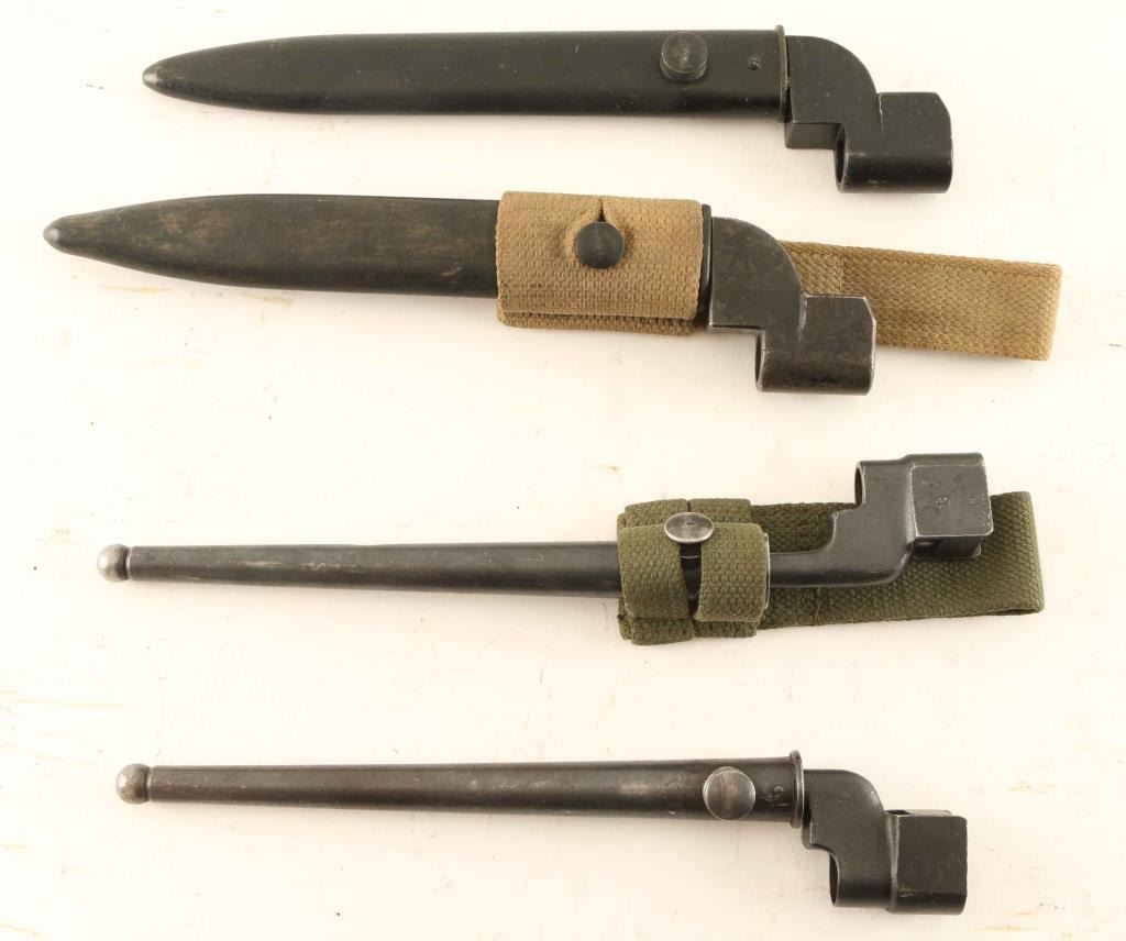 2 Enfield spike bayonets with scabbards and 2 Enfield blade bayonets with scabbards