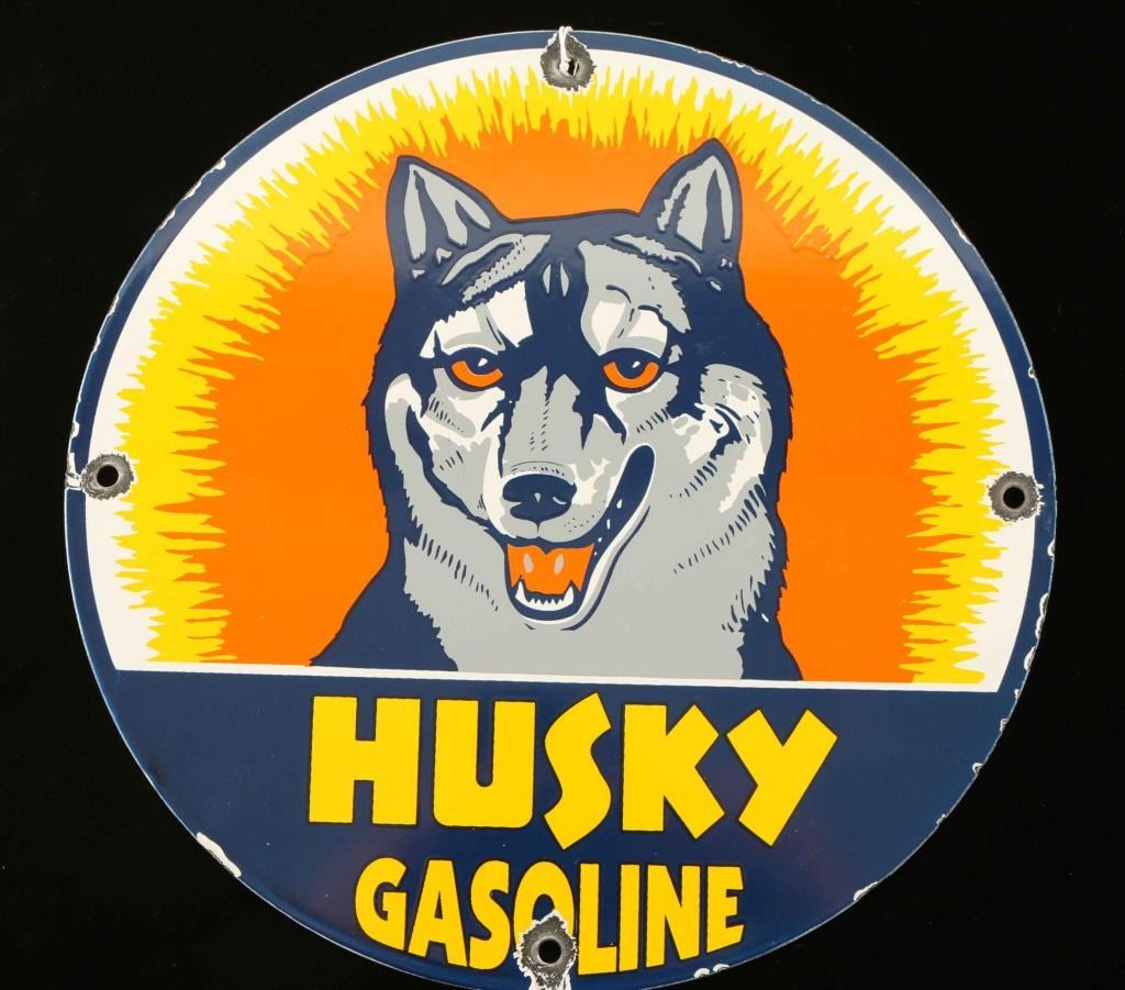 Lot 1455 Vintage Husky Gasoline Porcelain Sign