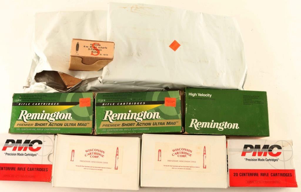 Approx. 140 rounds of 8mm M. 30 scharfe in boxes (See Picture), approx. 40 rounds of PMC 8mm Mayser and approx. 80 rounds of 7mm Mag & Ultra Mag