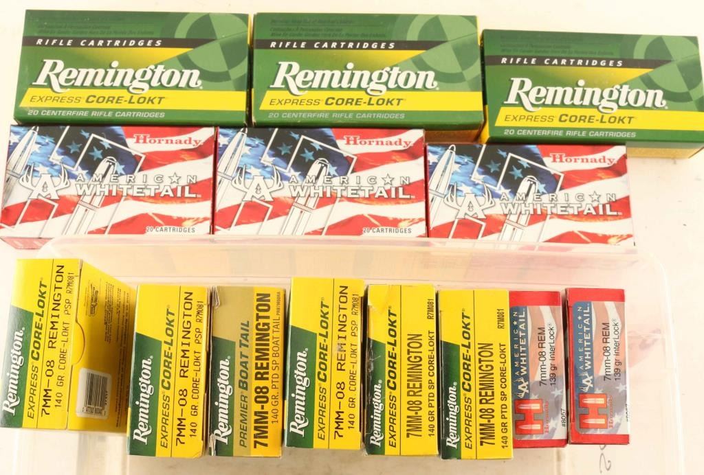 Approx. 250 rounds of 7mm-08 by various makers in boxes
