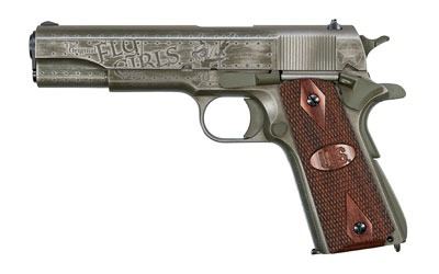 Auto Ordnance, Fly Girls, Special Edition WW2, Semi-automatic, 1911, 45 ACP, 5" Barrel, Steel Frame, Black and OD Green Cerakote Finish, Wood Grips with US Logo, 7Rd, 1 Mag, Thumb Safety, Blade Front/Adjustable Rear Sight, Custom Engraved w/Original Fly Girls Script, Logo, and Years of Service, Includes Rivets and Panels