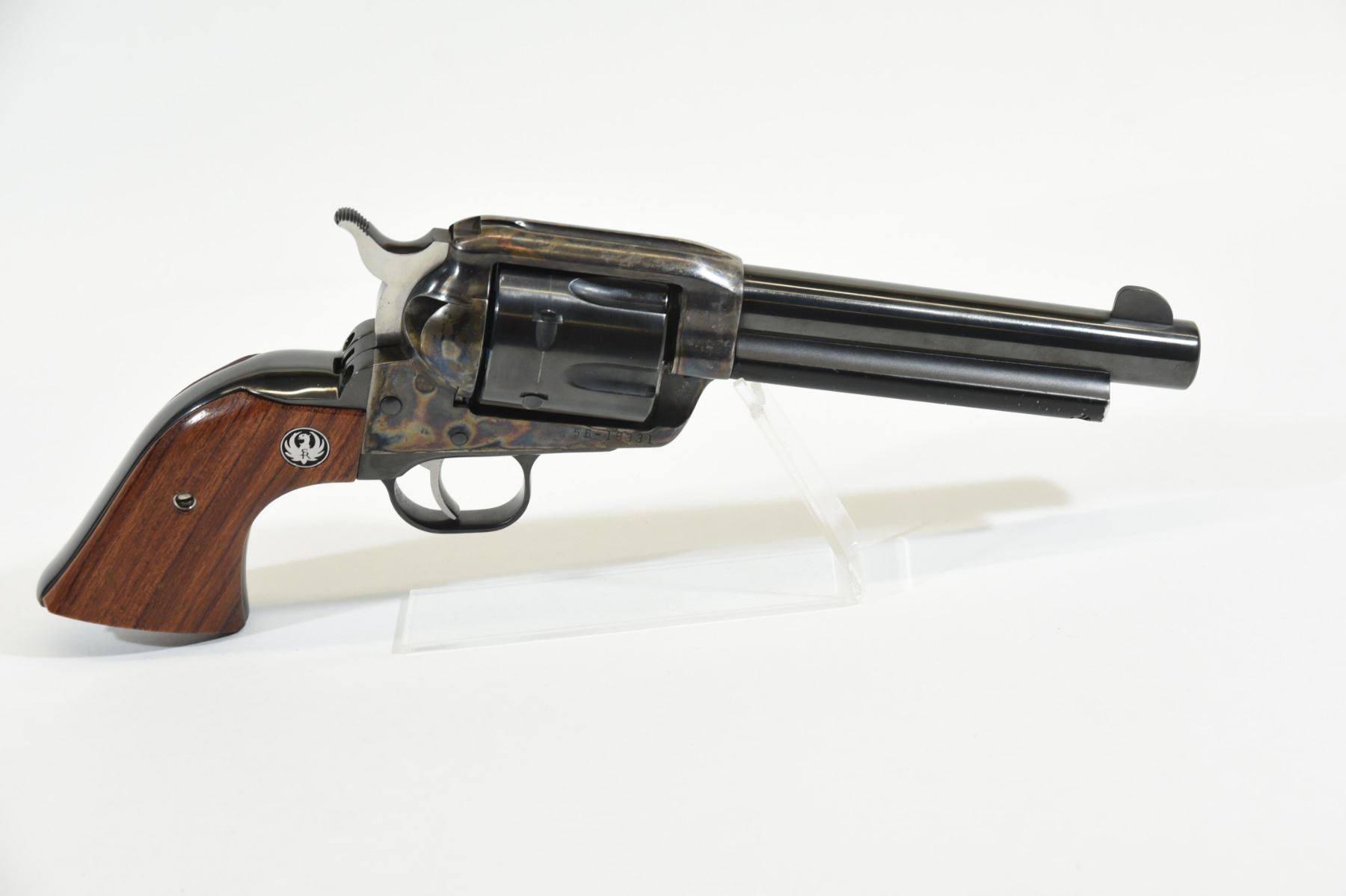 Restricted, revolver, 45 Long Colt, 140mm barrel, SN 5518331. Wood grips very good, bluing has some marks, nice case hardening on receiver, bore excellent.