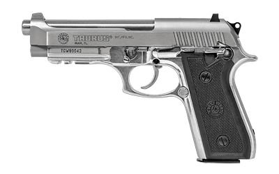 Taurus, PT92, Full Size, 9MM, 5" Barrel, Alloy Frame, Stainless Finish, Rubber Grips, Fixed Sights, with Rail, 17Rd, 2 Magazines