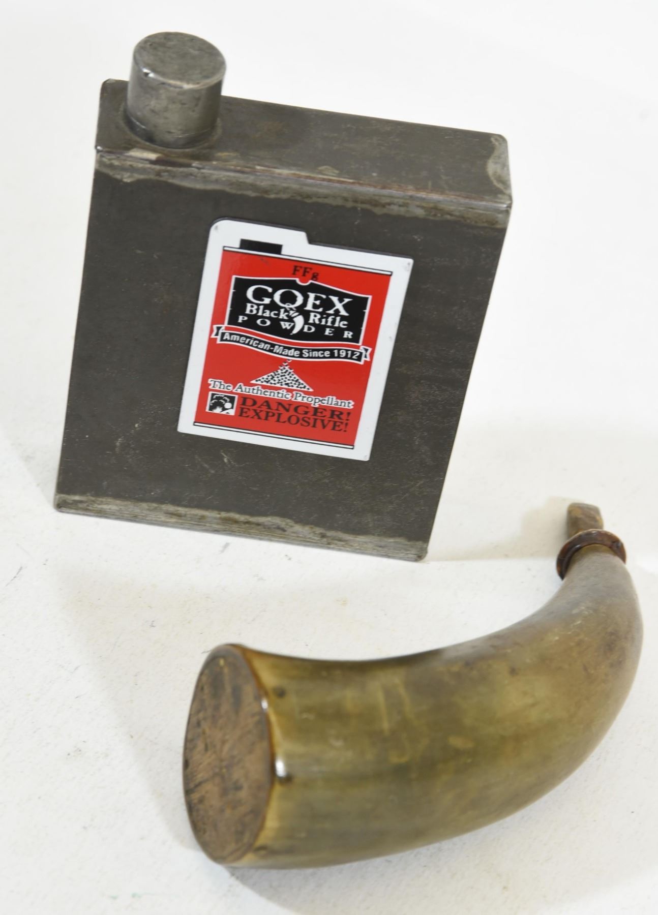 1) small powder horn 2) metal powder flask